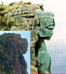 Gesichter und Figuren aus Stein - Erato - 05.11.12015 In vielen Regionen der Welt findet man Überreste alter Kulturen. Überreste, die Fragen aufwerfen. Ist es den damaligen Kulturen möglich gewesen, diese Figuren und Gesichter zu erschaffen? Und wenn ja - wie sollte das ohne Technologie möglich sein? Es gibt immer wieder Vermutungen, daß es wohl doch eine hoch entwickelte Kultur gegeben haben muß, welche Eigenschaften und Technologien besaß, die diese Denkmäler erschaffen konnten. Die Dame von Mali Diese sehr gut erhaltene Figur findet man in der Nähe von Conakry in Westafrika am Berg Lour. Der Berg ist der nördlichste Punkt und der höchste Gipfel in der Fouta Djallon im Norden Guineas. Er ist ein Teil des Bergkomplexes Massif de Tamgue. Die Höhe der Figur beträgt 150 m. Der italienische Geologieprofessor Angelo Pitoni schätzt das Alter auf 10.000 bis 12.000 Jahre. Man konnte das Gestein analysieren, es handelt sich hierbei um Granit. Wie die blaue Färbung geschaffen wurde, ist nicht zu erklären. Anmerkung: Auffällig ist, daß die Gesichtsform nicht der ansässigen Bevölkerung entspricht. Wer wurde bzw. hat sich hier verewigt? RE: Gesichter und Figuren aus Stein - Erato - 05.11.12015 Niobe in Sipylos Niobe, Schwester des Pelops, war stolz. Stolz war sie auf ihre Klugheit, stolz auf ihre Schönheit, stolz auf ihren Vater, Tantalos - den Sohn des Göttervaters Zeus - den Freund der Götter, der an ihren Gastmählern teilnahm. Stolz war sie auf ihren Gemahl Amphion, den König, der von den Musen die zauberkräftige Harfe erhalten hatte, durch deren Spiel die Mauern der Königsburg von Theben aufgebaut worden waren. Am stolzesten aber war sie auf ihre vierzehn Kinder - sieben Söhne und sieben Töchter. Eines Tages riefen die thebäischen Frauen zur öffentlichen Verehrung der Titanin Leto und ihrer Zwillingskinder (von Zeus) Apollon und Artemis auf. Sie schmückten ihr Haar mit Lorbeerkränzen und zogen betend durch die Straßen, um den Göttlichen ein Weihrauchopfer darzubringen. Da begegneten sie Niobe mit ihrem Gefolge. Prunkvoll war ihr Kleid, Geschmeide zierte Hals und Arme. Voll Zorn brachte sie den Zug zum stehen und sprach: "Was ehrt ihr Götter, die ihr nie gesehen habt und von denen ihr nichts wißt. Warum ehrt ihr mich nicht, die ich unter euch bin? Mein Vater ist der Götterfreund Tantalos, meine Mutter Dione. Der Vater meines Vaters ist Zeus. Mein Gemahl Amphion ist euer König, dem selbst Steine gehorchen. Unermeßlich ist mein Reichtum, ohnegleichen meine Schönheit. Keine Mutter hat eine solche große Zahl von herrlichen Söhnen und schönen Töchtern. Wollt ihr Leto, die nur zwei Kinder besitzt, mir vorziehen, mir, einer Mutter von vierzehn Kindern... Nehmt die Kränze aus euren Haaren, laßt Opfer und Gebete sein und geht nach Hause. Ich will euer törichtes Tun nicht mehr sehen." Die Frauen erschraken über die frevelnden Worte, nahmen widerwillig die Kränze aus den Haaren und gingen still betend davon. Die Göttin Leto, die ihre Verhöhnung sah, sprach zornentbrannt zu ihren Zwillingen: "Meine Kinder, wollt ihr es dulden, daß wir von einer Sterblichen beschimpft und der Ehre, die uns gebührt, beraubt werden?" Artemis und Apollon hüllten sich sogleich in eine Wolke und stürmten durch die Lüfte nach Theben. Apollon tötete mit seinen Pfeilen die sieben Söhne der Niobe. Die Schreckensnachricht vom Tod der Königssöhne verbreitete sich rasch in der Stadt und drang auch in den Königspalast. Amphion stieß sich vor Schmerz das Schwert in die Brust. Niobe eilte wie eine Irre mit aufgelöstem Haar zu ihren Söhnen, so daß sie selbst ihre Feinde bemitleideten, küßte bald diesen, bald jenen Sohn, konnte aber keinen zum Leben erwecken. Da hob sie in unermeßlichem Haß die Arme gegen den Himmel und rief: "Weide dich an meinem Leid, Leto, du unersättliche, triumphiere als Siegerin." Doch als sich ihr ihre Töchter im Trauergewande näherten, bäumte sich ihr alter Stolz auf. "Sieben Söhne hast du mir genommen, doch ich habe noch sieben Töchter. Was sind deine beiden gegen sie? Mir bleibt im Unglück mehr als dir im Glück." Kaum waren die Worte gesprochen, schwirrten die Pfeile der Artemis, und alle Töchter wurden ein Raub ihrer unbarmherzigen Rache. Einsam und tiefgebeugt saß die einst so stolze Niobe zwischen den Leichen ihrer Kinder. Ihr Leid war zu groß und ließ sie erstarren. Sie wurde zu Stein. Ein Sturmstoß hob den Fels in die Lüfte und entführte ihn in Niobes Heimat auf das Gebirge von Lydien. Dort am Berg Sipylos bei Manisa ist Niobe an den Klippen als Marmorfels mit menschlichem Antlitz noch zu sehen. Die schönsten Sagen des klassischen Altertums aus der Ingolstädter Partnerstadt Manisa von Dr. Treffer, Ingolstadt RE: Gesichter und Figuren aus Stein - Erato - 08.11.12015 Die beiden folgenden Bilder wurden in Deutschland aufgenommen. Es gibt leider keine genauen Angaben. Sie stammen aus Oberschwaben, dem bayrischen Wald oder der Fränkischen Schweiz. Es ist nichts weiter im Netz zu finden ... Drachenkopf: Schlangenkopf: Bilder von Dr. Karin Schätzlein Anmerkung: Wenn diese Steine kein "Zufall der Natur" sind, findet man wieder einen Hinweis auf einen Schlangenkult, welcher sich vor der Zeitrechnung auf allen Kontinenten wiederfindet. RE: Gesichter und Figuren aus Stein - Erato - 08.11.12015 Der Alte vom Berg Dieses Steingesicht ist ein bekanntes Touristenziel im Harz. Um den Harz ranken sich viele Mythen und Legenden. Im Umkreis soll es viele Hinweise auf alte heidnische Kultstätten geben. Bild: harzlife.de RE: Gesichter und Figuren aus Stein - Paganlord - 09.11.12015 Zu Niobe Niobe im Schloßpark Neustrelitz Niobe in Sipylos Leto ist in der griechischen Mythologie ein Titanenkind. Also die Tochter der Titanen Koios und Phoebe. Sie wurde später eine Geliebte des Zeus, mit welchem sie die Zwillinge Artemis und Apollon zeugte. Laut der oben geschilderten Mythe hat sich Niobe gegen die Planetenbesitzerin, Frau Gaia, erhoben, weil si