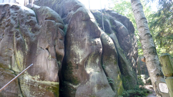 RE: Gesichter und Figuren aus Stein - Erato - 09.07.12017 Im Riesengebirge erzählt man sich viele Sagen und Märchen, und bekannt ist so manchem, dass Rübezahl einst hier gelebt haben soll. Wir kennen Rübezahl als Hüter der Natur, der seine Keule gegen schädliche Einflüsse schwang. In der Adersbach-Weckelsdorfer Felsenstadt findet man noch einen Teil dieser Zeit lebendig und sichtbar in vielen Steinfiguren und Gesichtern. Löwinnenkopf als Wächter? Die Bewohner der Umgebung zogen sich nur bei feindlichen Überfällen an diesen Ort zurück. Es scheint, dass dieser Ort nicht nur strategischen Schutz bot, sondern es sich auch um eine alte Kultstätte handelt. Bürgermeister und Bürgermeisterin Quellen: http://ehlers-hh.de/Riesengebirge/Felsenstadt.htm https://commons.wikimedia.org/w/index.php?curid=7820539 RE: Gesichter und Figuren aus Stein - Lohe - 18.07.12017 Teufelsschlucht Irrel in der Vulkaneifel