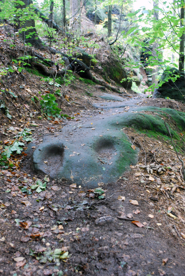 RE: Gesichter und Figuren aus Stein - Erato - 09.07.12017 Im Riesengebirge erzählt man sich viele Sagen und Märchen, und bekannt ist so manchem, dass Rübezahl einst hier gelebt haben soll. Wir kennen Rübezahl als Hüter der Natur, der seine Keule gegen schädliche Einflüsse schwang. In der Adersbach-Weckelsdorfer Felsenstadt findet man noch einen Teil dieser Zeit lebendig und sichtbar in vielen Steinfiguren und Gesichtern. Löwinnenkopf als Wächter? Die Bewohner der Umgebung zogen sich nur bei feindlichen Überfällen an diesen Ort zurück. Es scheint, dass dieser Ort nicht nur strategischen Schutz bot, sondern es sich auch um eine alte Kultstätte handelt. Bürgermeister und Bürgermeisterin Quellen: http://ehlers-hh.de/Riesengebirge/Felsenstadt.htm https://commons.wikimedia.org/w/index.php?curid=7820539 RE: Gesichter und Figuren aus Stein - Lohe - 18.07.12017 Teufelsschlucht Irrel in der Vulkaneifel