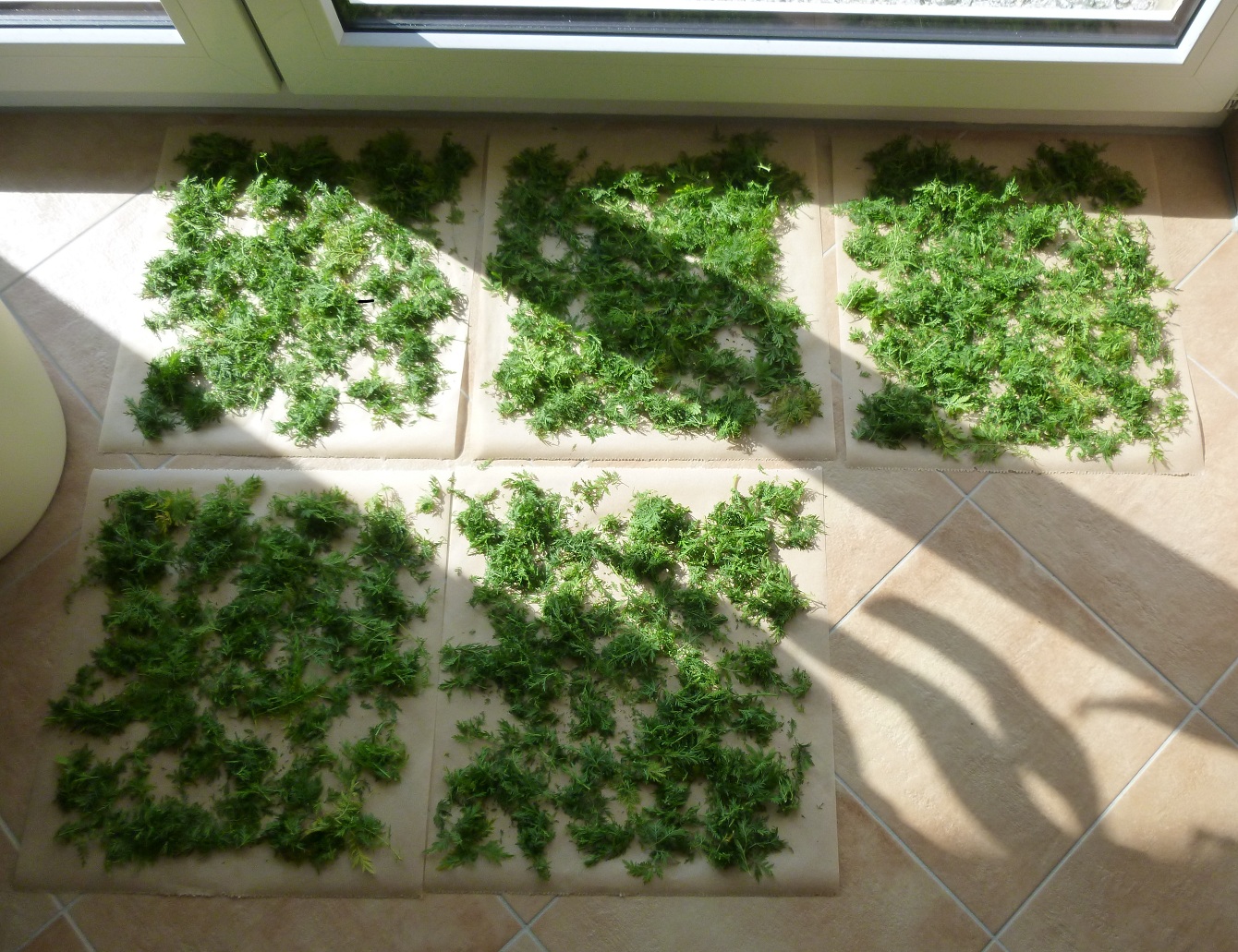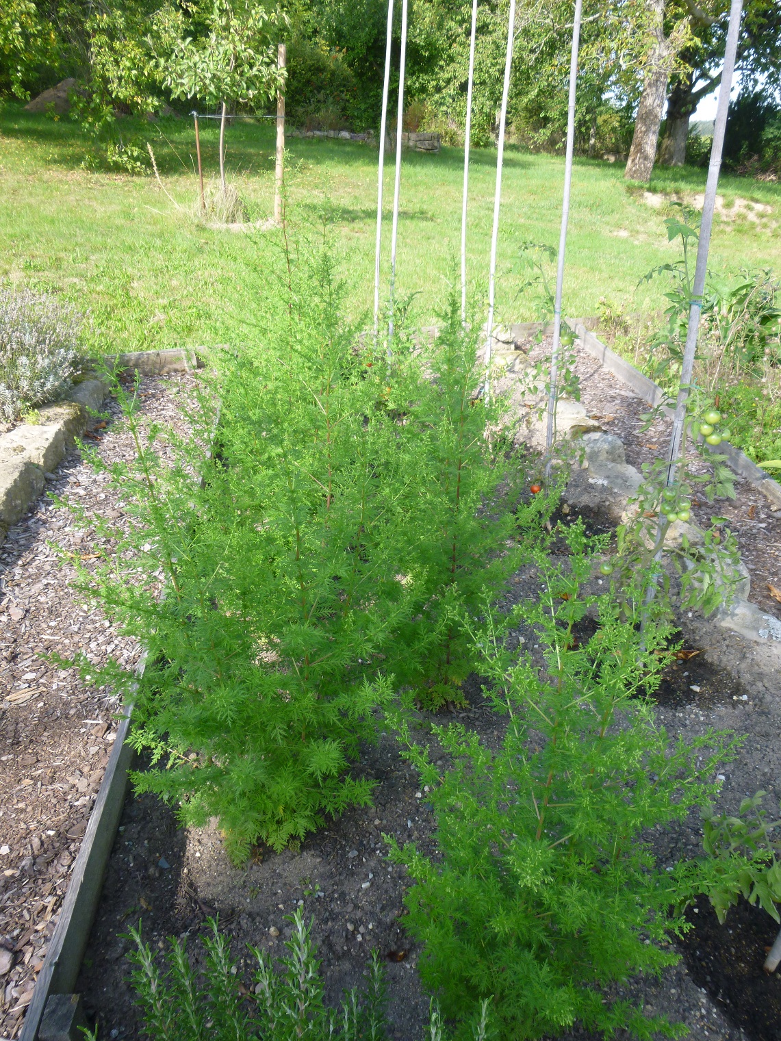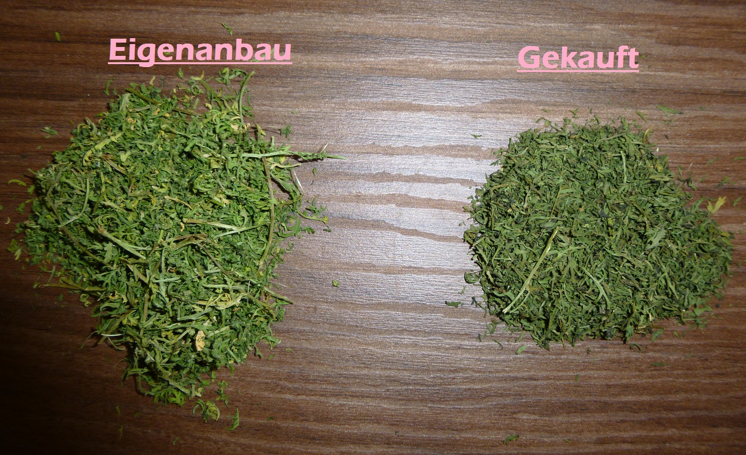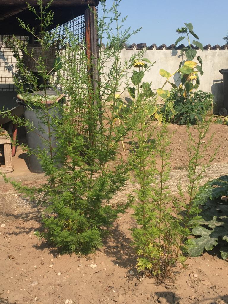 RE: Einjähriger Beifuß - Sirona - 12.09.12020 Ernte der Artemisia annua Es ist soweit, meine erste Ernte der Artemisia annua. Meine 11 Artemisia-annua-Pflanzen im Beet waren jetzt ungefähr 1,40 m hoch, und ich sah schon, dass sich Blüten entwickelten. Deswegen wurde vor ein paar Tagen geerntet. Die Artemisia annua in den Töpfen war ungefähr 80 cm hoch und auch schon reif für die Ernte. Auch hier waren es 11 Pflanzen. Die gesamte Ernte Blätter von den Stängeln entfernen Die gesamte Ernte beim Trocknen - in einem gut durchlüfteten Raum. Bin gespannt, wieviel Gramm die Blätter in getrockneten Zustand ergeben! Mein Fazit: Den meisten Ernteertrag hatte ich in einem gut vorbereiteten Beet. Die Pflanzen, die in Töpfe im Freien standen, werden zwar etwas größer, aber nichts im Vergleich zu denen in den Beeten. Die Pflanzen, die ich drinnen habe, haben sich nur um ungefähr 5 cm weiterentwickelt. RE: Einjähriger Beifuß - Yule - 15.09.12020 Wenn die Blühzeit gekommen ist, steckt die Artemisia annua alle Kraft in die Blüte – seht selbst, was dann passiert: Links sind schon die hellgrünen Blütenknospen zu erkennen. Die Blätter verlieren an grüner Blattfarbe, die Spitzen rollen sich leicht ein, das Blatt wird zum Stängel hin aufgerichtet. (Im Laufe der Blühzeit sollen sich die Blätter sogar ganz zurückbilden.) Rechts im Bild ist eine Pflanze, die aus dem gleichen Samen zeitgleich gesät wurde. Da sie etwas schattiger steht, hat sie noch keine Anzeichen von ersten Blütenknospen. Ihre Blätter haben ein sattes Grün und sind weit und offen ausgestreckt. Im Samen befindet sich ebenfalls der Wirkstoff Artemisinin, und er kann auch als Tee verwendet werden. Pollenallergiker sollten sich jedoch langsam „herantasten“, da v. a. die Blüten eine Beifuß-Allergie auslösen können. Wir werden aus einzelnen Pflanzen Samen für das nächste Jahr gewinnen. Unsere restlichen Pflanzen werden wir bei den allerersten Anzeichen von Blütenknospen vollständig abernten, um möglichst viel Teekraut trocknen zu können. RE: Einjähriger Beifuß - Munin - 16.09.12020 Ich glaube die Pflanzen wachsen am besten direkt im Boden, und nur die Anzucht im Topf ergibt wirklich Sinn. Meine Pflanzen scheinen einen Wachstums-Stopp zu haben, obwohl es ein großer, tiefer Blumentopf ist. Ich verstehe das aber, ich würde auch lieber direkt in der Erde wurzeln. ![]() Violetta: Das ist auch unsere Erfahrung. RE: Einjähriger Beifuß - verdandi - 16.09.12020 Meine waren in einem großen Topf und sind so groß wie ich, was für einen Menschen nicht viel, für eine Pflanze jedoch ganz ordentlich ist.