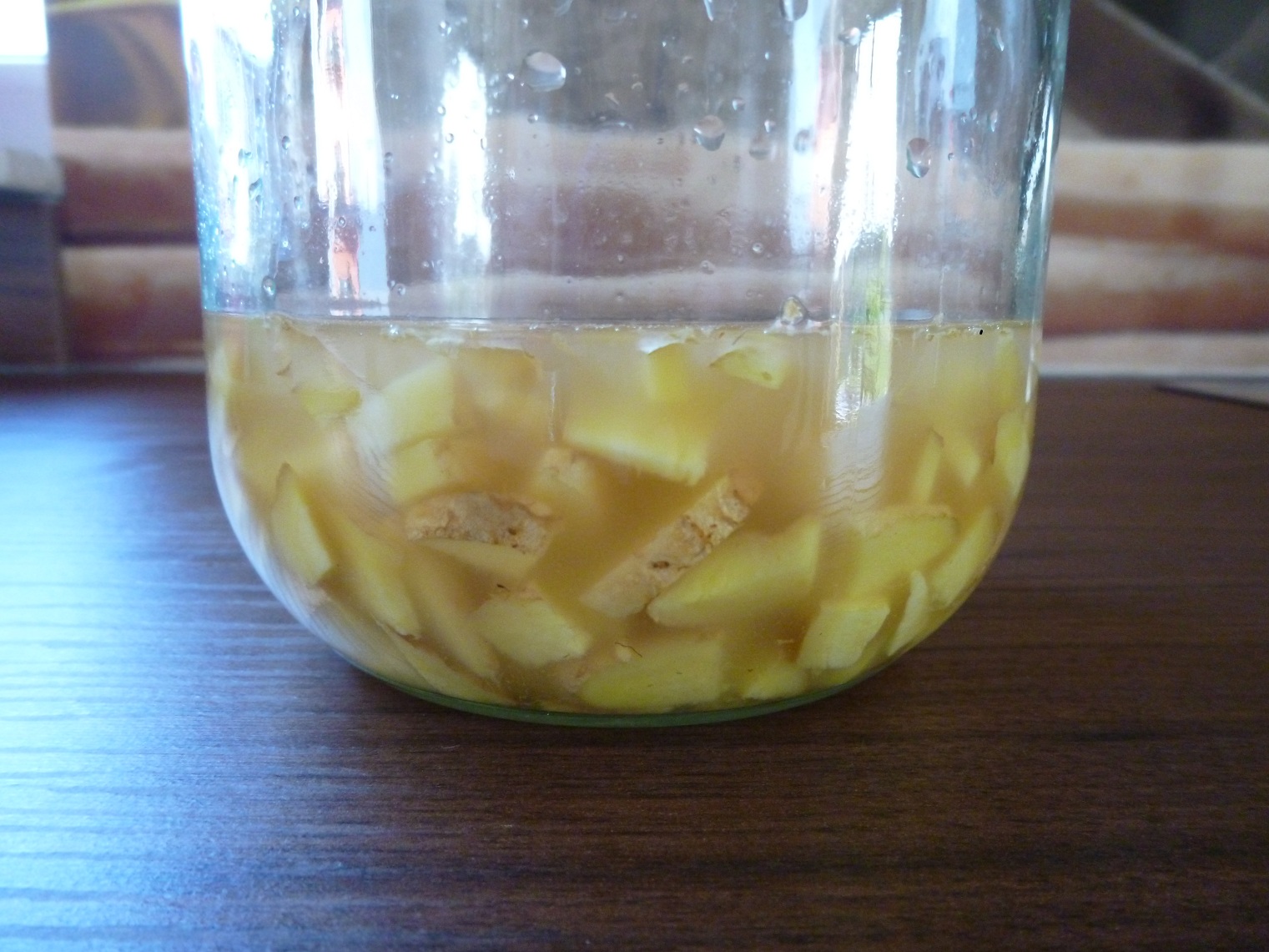 Naturheilmittel Oxymel - Ela - 08.04.12020 Oxymel – die Honigtinktur Honig ist sehr gut, Apfelessig ist sehr gut. Aber Honig mit Apfelessig? Ist noch viel besser... In diesem wunderbaren Naturheilmittel verbinden sich die Süße des Honigs und die fruchtige Säure des Apfelessigs mit der wohltuenden Wirkung der beigefügten Kräuter. Das Aroma der Kräuter gibt jeder Oxymel-Tinktur ihren besonderen Charakter. Der Begriff Oxymel (Sauerhonig) stammt aus dem Griechischen: „oxy“ bedeutet „sauer“ und „mel“ kommt von „méli“, dem Wort für „Honig“. Tatsächlich war Oxymel in der Antike ein vielverwendetes Heilmittel. Zusammen mit ausgewählten Kräutern wirkt sich Oxymel durchweg positiv auf den Körper aus. Honig Honig enthält folgende Inhaltsstoffe wie Kalium, Calcium, Magnesium, verschiedene Spurenelemente, Acetylcholin, Vitamin B1, B2, und C, Aminosäuren, antibakterielle und entzündungshemmende Stoffe sowie Frucht- und Traubenzucker. Apfelessig Viele der gesundheitsfördernden Stoffe im Apfel finden sich auch im Apfelessig wieder. Mineralstoffe, Spurenelemente, Vitamine, Flavonoide, die antioxidativ wirkende Gerbsäure Tannin, Zitronen- und Essigsäure sowie Aminosäuren. Heilkräuter Wenn eine Kräuter-Oxymel herstellt wird, bitte die passenden Kräuter zum jeweiligen Beschwerdebild verwenden. Es können auch Kräutermischungen zusammengestellt werden. Darauf achten, nur maximal drei bis fünf verschiedene Kräuter zu verwenden. Es könnte sein, daß die Oxymel einen eigenartigen Geschmack entwickelt. Wissenswertes über Oxymel-Tinkturen * vollwertige Säuren wirken gesundheitsfördernd, stärken das Immunsystem, unterstützen den basischen Stoffwechsel * für Kinder hervorragend geeignet * sehr empfehlenswert für Menschen mit erhöhtem Nährstoffbedarf wie ältere Menschen, Sportler, Kinder und Jugendliche im Wachstum * wertvolle Alternative zu Weißzucker und Zitronensäure * lange Haltbarkeit * Nährwert ca. 100-200 kcal /100 ml Empfohlene Heilpflanzen für Oxymel-Tinkturen Alterung: Sanddorn, Curcuma, Ginseng, Rose Antibiotisch: Ingwer, Salbei, Thymian Ängste: Rose, Linde, Veilchen Aphrodisiakum: Damiana, Engelwurz, Muskat Beruhigung: Kamille, Lavendel, Rosenblüten, Zirbenzapfen Bindegewebe: Schachtelhalm, Schafgarbe, Brennnessel Blutreinigung: Löwenzahn Bronchitis: Oregano, Anis, Spitzwegerich, Thymian Entwässerung: Wacholder, Eberwurz, Sellerie Erkältung: Oregano, Thymian, Spitzwegerich, Vogelmiere, Meerrettich, Sanddorn, Holunder, Hagebutte, Ingwer Fieber: Lindenblüte, Thymian Gute für Kinder: Minze, Kamille, Lavendel, Fenchel Gelenke: Vogelmiere, Hauswurz, Beinwell Herz-Kreislauf: Hagebutte, Herzgespann, Weißdorn Husten: Fichtenwipfel, Spitzwegerich, Eibisch, Meerrettich, Salbei, Thymian, Gänseblümchen Magen und Bauch: Beifuß, Fenchel, isländisch Moos, Kamille Niere und Blase: Birke, Goldrute, Johannisbeere, Brennessel Prostata: Weidenröschen, Brennessel, Kürbis Schilddrüse: Schwarznuß, Süßholz, Sibirischer Ginseng Schmerzen: Gewürznelken, Schwarzpappel, Weide, Kamille Vaginal: Steviakraut, Aloe, Feigen Verdauung: Meerrettich, Chili, Löwenzahn, Rosmarin Vitamin-C-Mangel: Petersilie, Hagebutte, Eberesche, Sanddorn, Scharbockskraut Wechseljahre: Salbei, Rotklee, Frauenmantel Grundrezept ein Teil Apfelessig drei bis vier Teile Honig 1/4 Anteil Kräuter Methoden Essigauszug Wenn frische Kräuter verwendet werden, sollten diese nach dem Waschen gut abgetrocknet sein, sonst kommt es gegebenenfalls zur Schimmelbildung. Das Gefäß mit Apfelessig auffüllen. Sollte ein Metalldeckel verwendet werden, empfiehlt es sich, ein Stück Frischhaltefolie zwischen Glas und Deckel zu legen. Das verhindert, daß das Metall durch die Essigsäure angegriffen wird. Das Gemisch sollte nun drei bis vier Wochen an einem dunklen aber warmen Ort stehen, bis die Inhaltsstoffe in die Essiglösung übertreten können (täglich schütteln). Nun werden die Kräuter abgesiebt und mit der gewünschten Menge Honig zu einer homogen Masse verrührt. Sollte der Honig zu fest sein, einfach an einen warmen Ort stellen oder vorsichtig im Wasserbad erwärmen, bis er eine flüssige Konsistenz bekommt und sich gut verrühren läßt. Nun kann die fertige Kräuter-Oxymel in eine dunkle Glasflasche mit Kunststoffverschluß umgefüllt werden. Kühl und dunkel gelagert hält er sich bis zu einem Jahr. Honig-Essig-Auszug Honig mit Apfelessig mischen. Dann die Kräuter zugeben wie beim Essigauszug und drei bis vier Wochen stehenlassen. Das Glas sollte täglich geschüttelt werden. Nun kann man das Oxymel mit den Kräutern einnehmen, und wer das nicht mag, den Honig auf max. 40 Grad erhitzen und die Kräuter absieben. Heißer Essigauszug (wenn’s mal schnell gehen muß) Die zerkleinerten Kräuter in den Apfelessig geben und diesen bis unter den Siedepunkt (ca. 90 Grad) erhitzen. Regelmäßig umrühren. Den Essig auf 50 Grad abkühlen lassen und die Kräuter durch ein Sieb filtern. Gut auspressen. Mit der gewünschten Menge Honig (siehe Grundrezepte) vermischen. Oxymel Heißverfahren Die Enzyme von Honig und Essig werden bei diesem Verfahren leider zerstört, es entsteht durch das Heißverfahren jedoch ein intensiver Kräuterauszug mit sehr guter Wirkung. Das fertig gemischte Oxymel (Grundrezept) mit den kleingeschnittenen Kräutern in einen Topf füllen und die Mischung bei niedriger Hitze (ca. 90 Grad) eine Stunde köcheln lassen. Kräuter abfüllen und in Gläser oder Flaschen abfüllen. Haltbarkeit etwa ein Jahr bei Zimmertemperatur. Empfohlene Einnahme und Dauer Erwachsene nehmen täglich zur Stärkung des Immunsystems 30 bis 50 Milliliter der Tinktur (das entspricht etwa zwei bis drei Esslöffeln) etwa eine halbe Stunde vor dem Essen gelöst in einem Glas Wasser zu sich. Du kannst Oxymel vorbeugend gegen Krankheiten drei Wochen lang täglich einnehmen und nach einer einwöchigen Pause wieder damit beginnen. Natürlich habe ich gleich mal eine ausprobiert (Essigauszug-Methode) Ingwe
