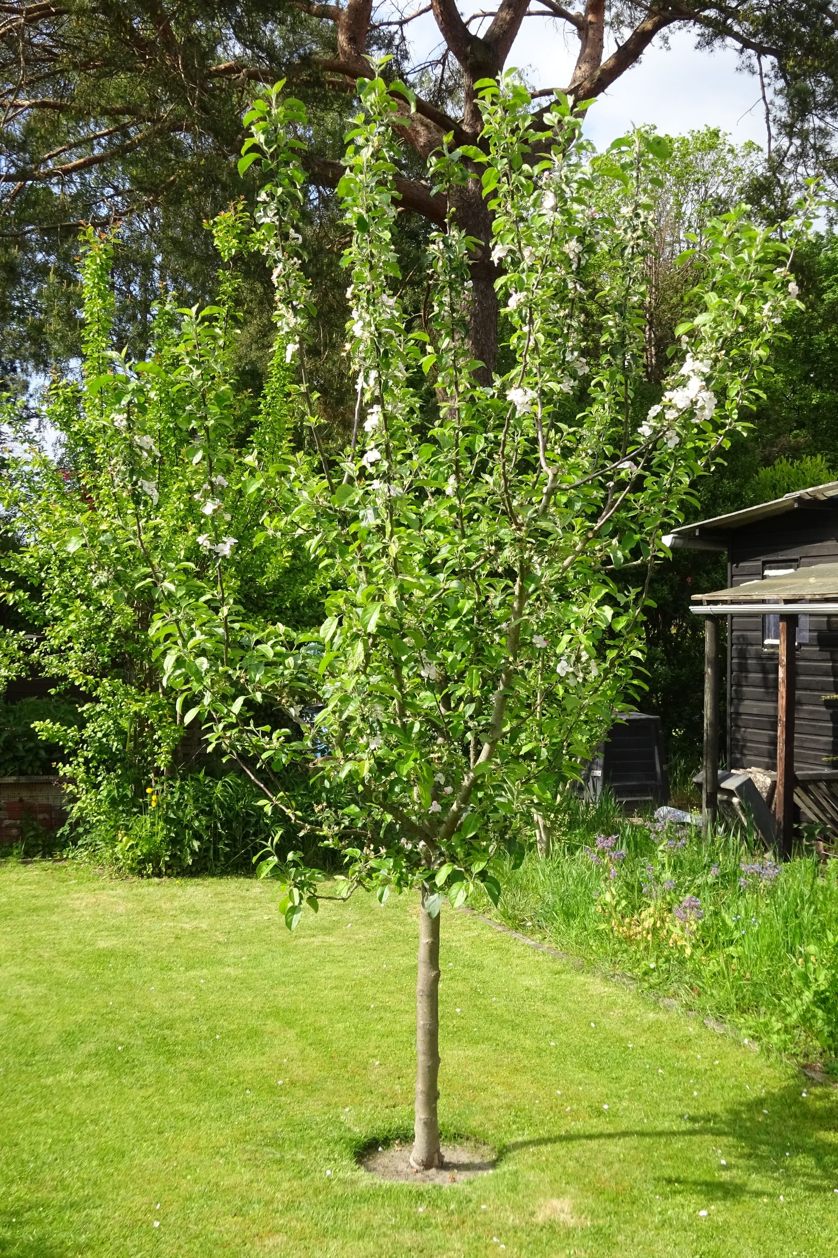 Unser Apfelbaum ist nun seit über einem Jahr in unserem Garten. Ich habe diese Sorte aufgrund des Standortes ausgewählt und weil der Anbau seit vielen Jahrhunderte anscheinend hier in unserer Gegend immer sehr erfolgreich war. Die Apfelbaumsorte Goldparmäne ist eine sehr alte Sorte.