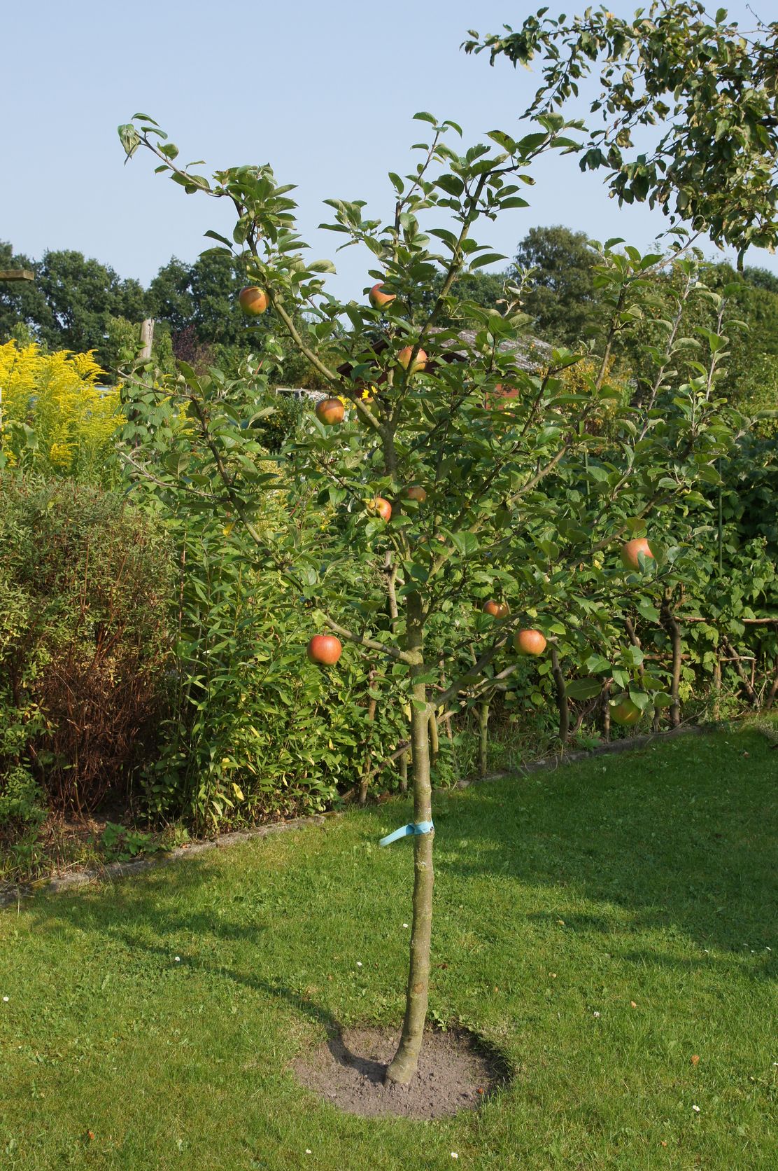 Mir gefiel, daß diese Sorte keine Monokultur mag; hier reagiert das Bäumchen kränklich, und so wird er kaum noch kommerziell angebaut. Wir hatten auch nicht allzu viel Platz mehr frei und wollten aber unbedingt einen Apfelbaum, der nicht allzu groß wird, aber dennoch gut trägt. Die Wahl viel also auf der goldene Apfelbaum.  Biggrin