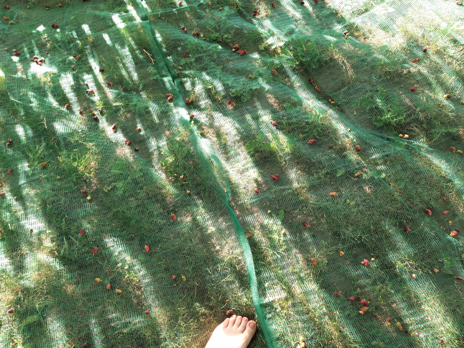 Wir haben heute morgen unsere bestellten Erntenetze unter den Maulbeerbaum gelegt. Keinen Tag zu früh!  Wow