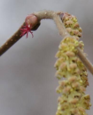 Beim heutigen Spaziergang im Garten entdeckte ich die volle Blüte der Haselnuß.