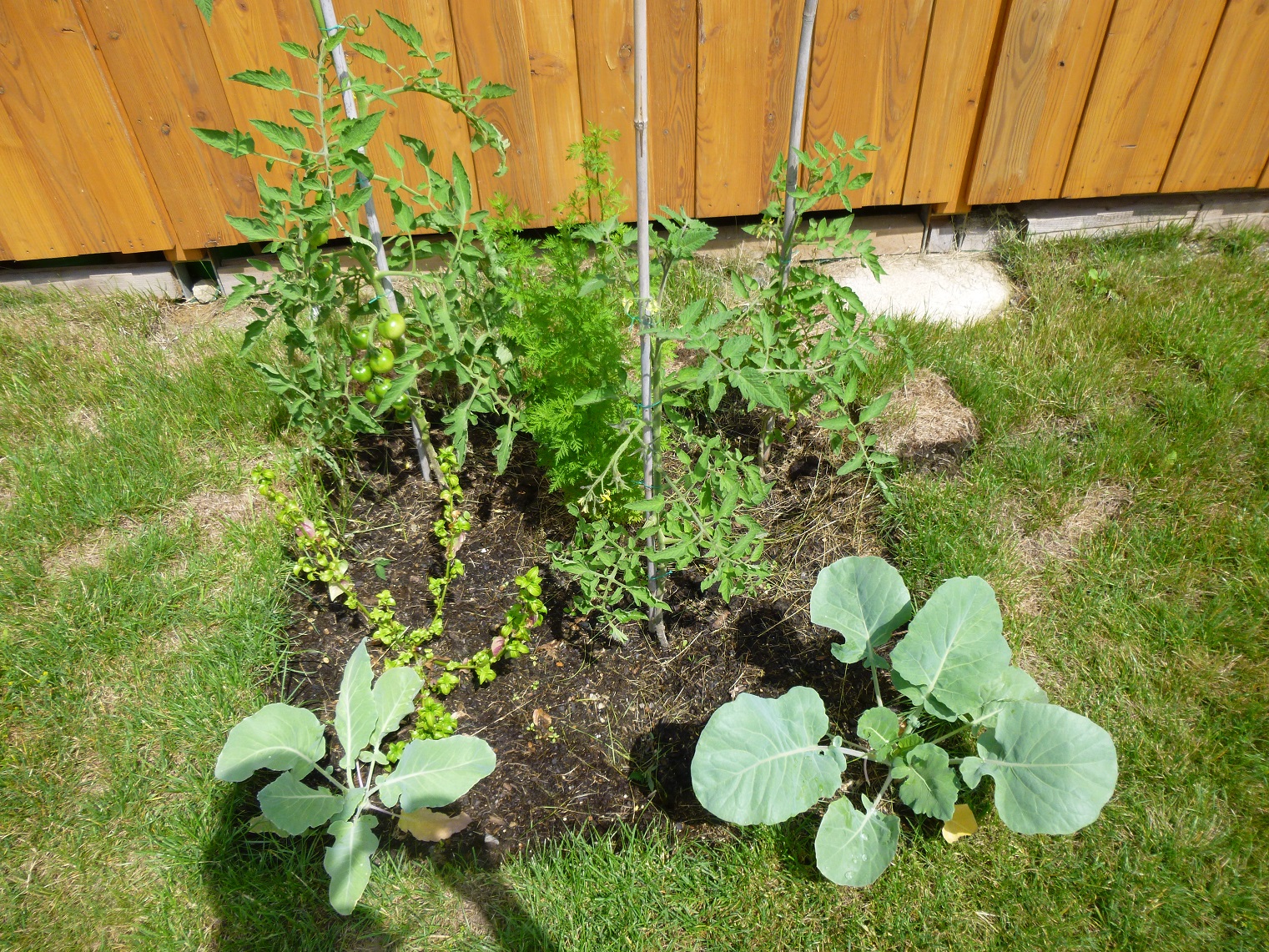 Darauf habe ich 3 verschiedene Tomaten, Beifuß und Kohlrabi gepflanzt.