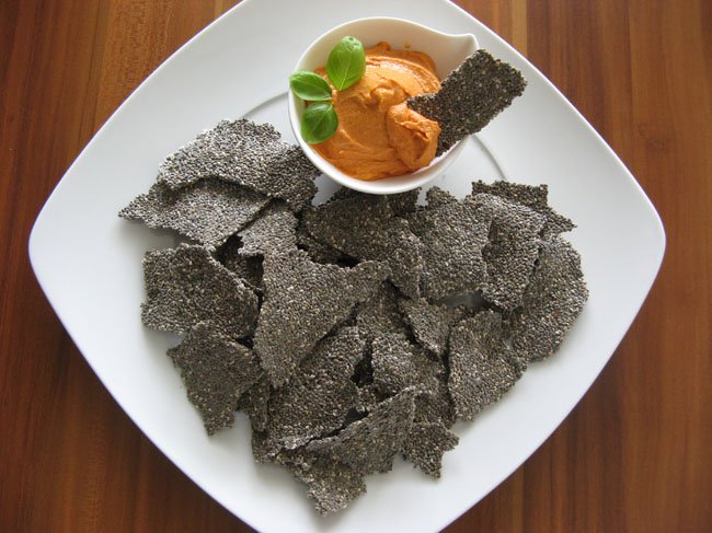 Schnell gemachtes Knäckebrot ohne Einsatz von Hilfsmitteln (Mixer). Besonders lecker zu selbstgemachtem Rohkost-Käse
