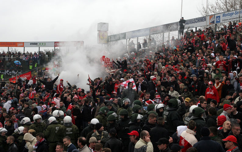Bereits vor dem Spiel des 1.FC Union Berlin gegen Rot-Weiß Erfurt kam es gegen 13 Uhr auf dem Weg vom S-Bahnhof Köpenick zum Stadion durch anströmende Gästefans zu Sachbeschädigungen an angrenzenden Geschäften. Zum Teil stark alkoholisierte Erfurter Anhänger zerstörten Auslagen und warfen Flaschen und Bierdosen auf die eingesetzten Beamten. Ein Polizist wurde dabei leicht verletzt.