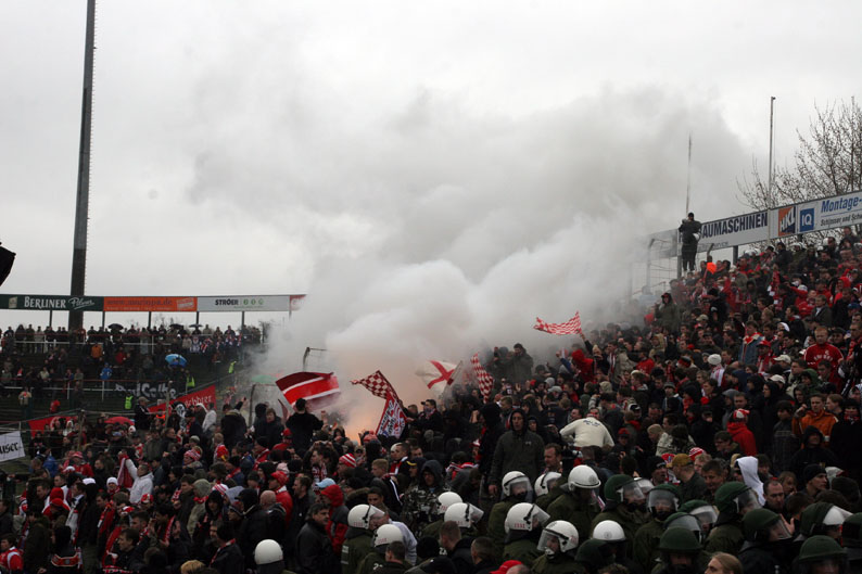 Zitat:Polizeibericht: Insgesamt 17 Festnahmen und fünf leicht verletzte Beamte verzeichnete die Polizei heute Nachmittag vor und während eines Fußball-Regionalliga-Spiels in Köpenick.