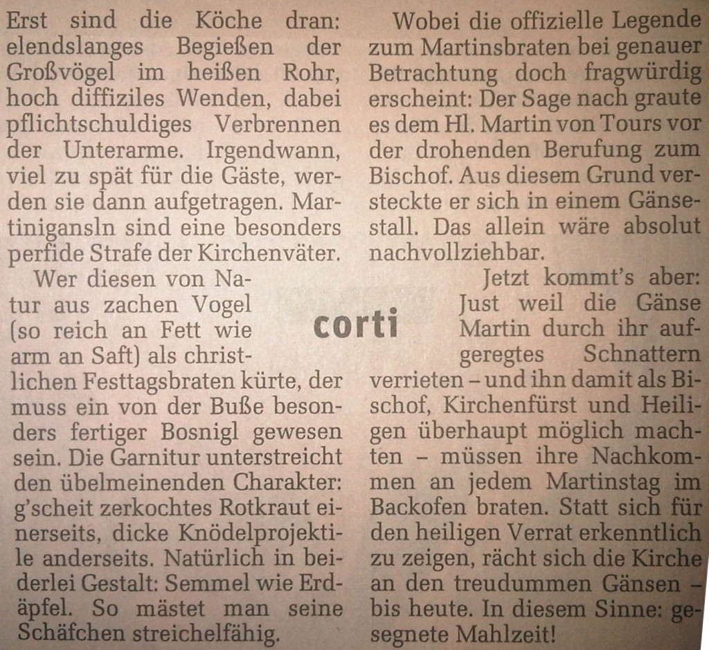 Weil es sonst nirgends dazu passt, aber die Zeit dafür wieder näher rückt, folgender Abschnitt (wollt es nicht runtertippen):