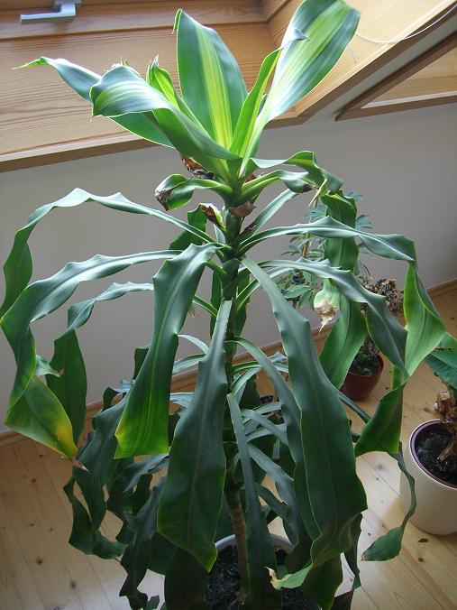Unsere Yuccapalme schwächelte im Herbst, und an der Spitze machte sich sogar ein Pilz breit. Ich goß sie erstmal 3 Wochen lang nicht, um dem Pilz die Feuchtigkeit zu nehmen. Zu vieles Gießen ist auch oft das Hauptproblem bei der Zimmerpflanzenpflege. Ich gehöre auch zu den Zuviel-Gießern, getreu dem Motto, viel hilft viel. Aber gerade im Herbst sollte das Gießen der Zimmerpflanzen zurückgefahren werden. Man prüft mit dem Daumen, wie feucht die Erde im Topf ist, und richtet danach sein Gießverhalten.