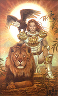 Lieber Herr Sonne, scheine, zeig' mir Dein Gesicht, das warme und reine. Bring uns Dein Licht! Bring mir Dein frohes Lachen, spende mir Deine Wärme. Fahre auf Deinem Nachen, entlang zur Himmelstherme! Ich will Dich ehren und Dich feiern, will Dir opfern und Dich preisen, will Dich besingen auf der Leier, stets den Weg sollst Du mir weisen! Meine Freunde will ich laden, sich an Dir zu freuen, sich an Dir zu laben, Dir zu schwören allzeit Treue! – Paganlord –