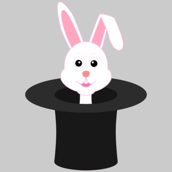 Packt der Bäcker ihm seine Brötchen in die Tasche, und der Hase verschwindet wieder.