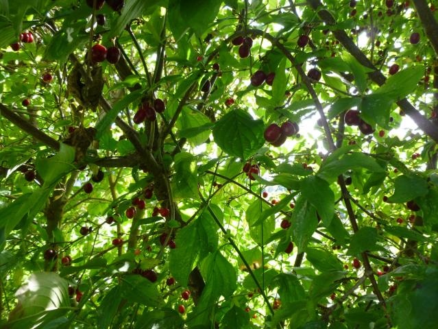 Trotz Heckenschnitt sind noch viele Kirschen vorhanden. Sie schmecken etwas säuerlich, aber dafür sehr erfrischend, belebend und erquickend.