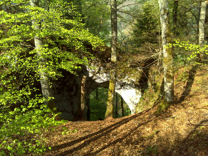 Und jetzt wird’s interessant. Die Bilder ließen mich vermuten, dass es ein freistehendes Tor ist, aber es war mehr eine Art Loch in einer Felswand. Und hindurch zog sich ein recht steiler Abhang. Im Allgemeinen wird angenommen, dass es sich hier um eine Opferstätte handelt. Durch Grabräuber und später auch Ausgrabungen kamen viele Fibeln und Ringe ans Licht, die wohl durch das Tor nach unten geworfen wurden. Da ich selbst zweimal hindurchging, kann ich bestätigen, dass nichts, was da hindurch fällt, so schnell wieder nach oben kommt.