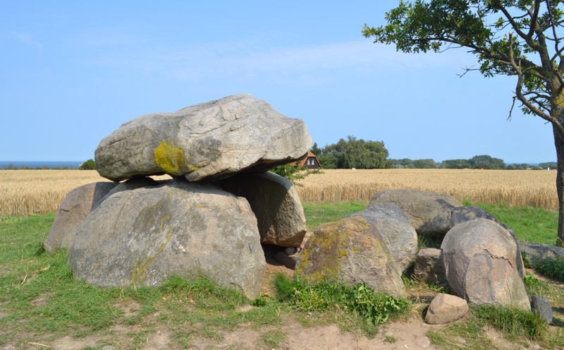 Den ersten entdeckten wir kurz vor Rerik. Über die Straße durch ein Kornfeld erreichte man den ersten Großdolmen.