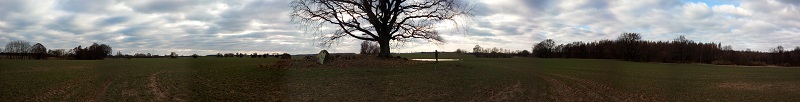 Eine wunderschöne Eiche steht ganz alleine auf dem Grab, und weit und breit ist nur ebenes Land.