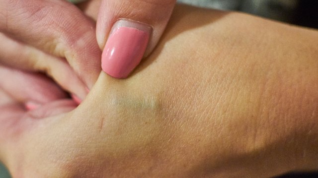Eine schwedische Tui-Mitarbeiterin mit Chip unter der Haut - der Mikrochip ist kaum zu erkennen