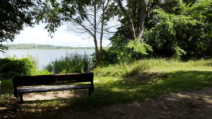Einen neuen Platz habe ich direkt an einem Fluß gefunden. Da steht eine Bank, die ich in der Mittagspause manchmal aufsuche und mich dort niederlasse. Der Blick aufs Wasser (der Fluß ist da ca. 100 m breit) und ringsherum Bäume, einfach toll. 3 Nüsse für die Herrin der Havel und für Pan, und eine erholsame Pause ist garantiert. Auch wenn die sich in der Nähe befindliche stark befahrene Brücke etwas stört, besteht trotzdem die Herausforderung, wieder zurück an den Arbeitsplatz zu gehen Lächeln