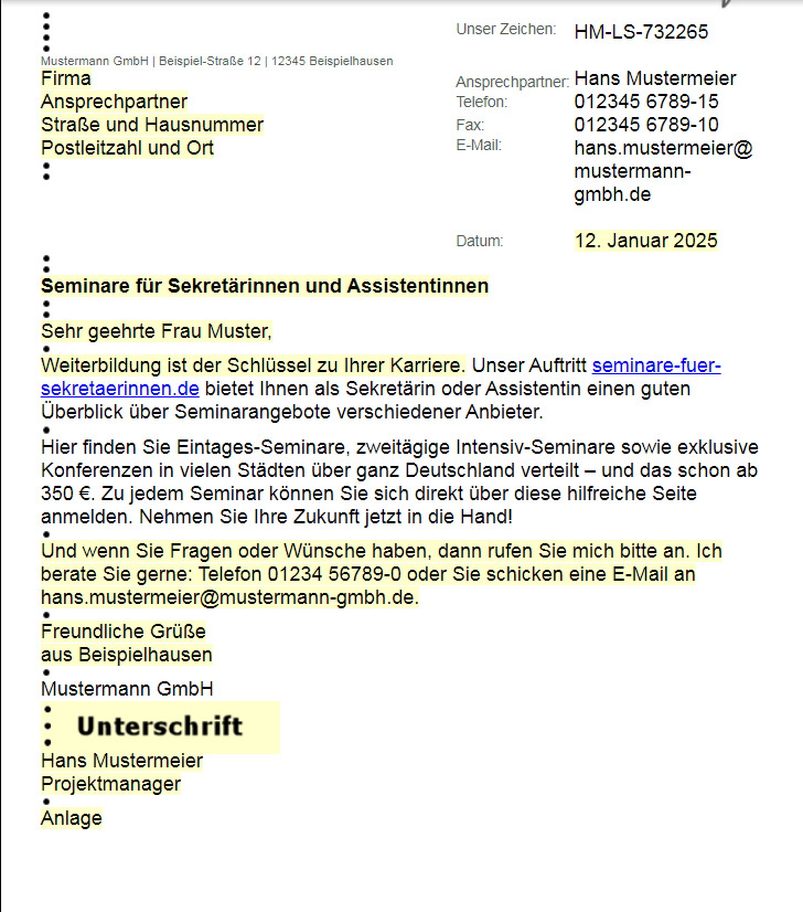 DIN 5008 Geschäftsbrief