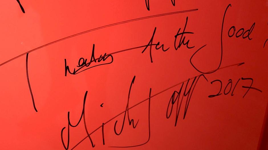 Hier ein Photo mit der Unterschrift eines bekannten Musikers, Mick Jagger.