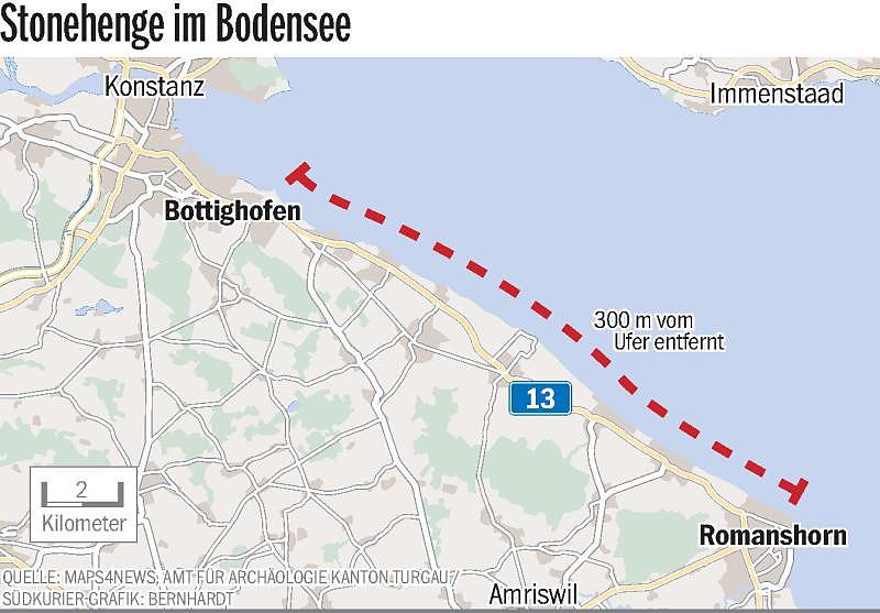 Die Steinhügel waren 2015 vom Institut für Seenforschung in Langenargen (D) bei Tiefenvermessungen zwischen Romanshorn und Bottighofen entdeckt worden. Die Hügel haben jeweils einen Durchmesser von fünfzehn bis dreissig Metern und befinden sich in regelmässigen Abständen in einer Reihe in Ufernähe, rund viereinhalb Meter unter Wasser.