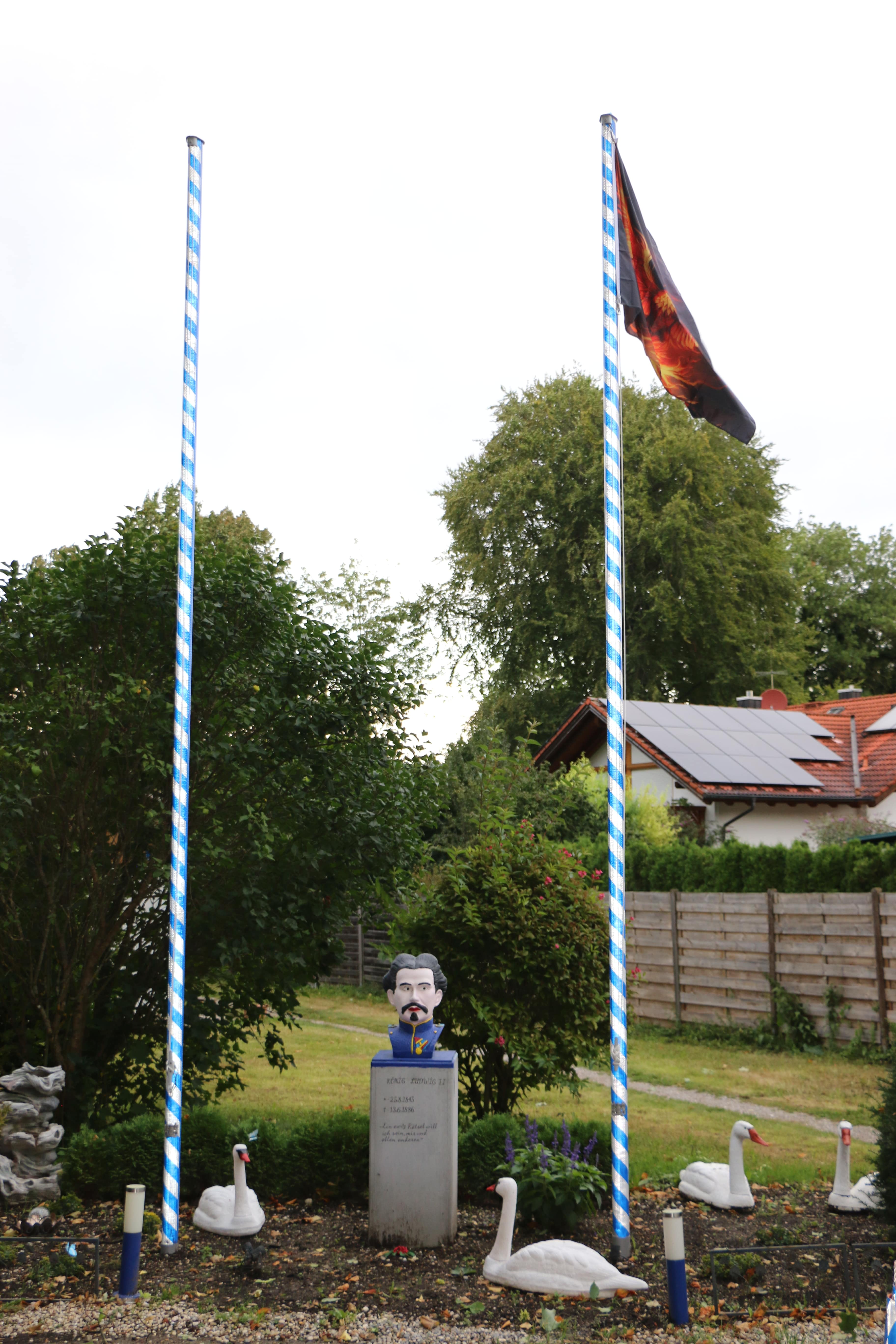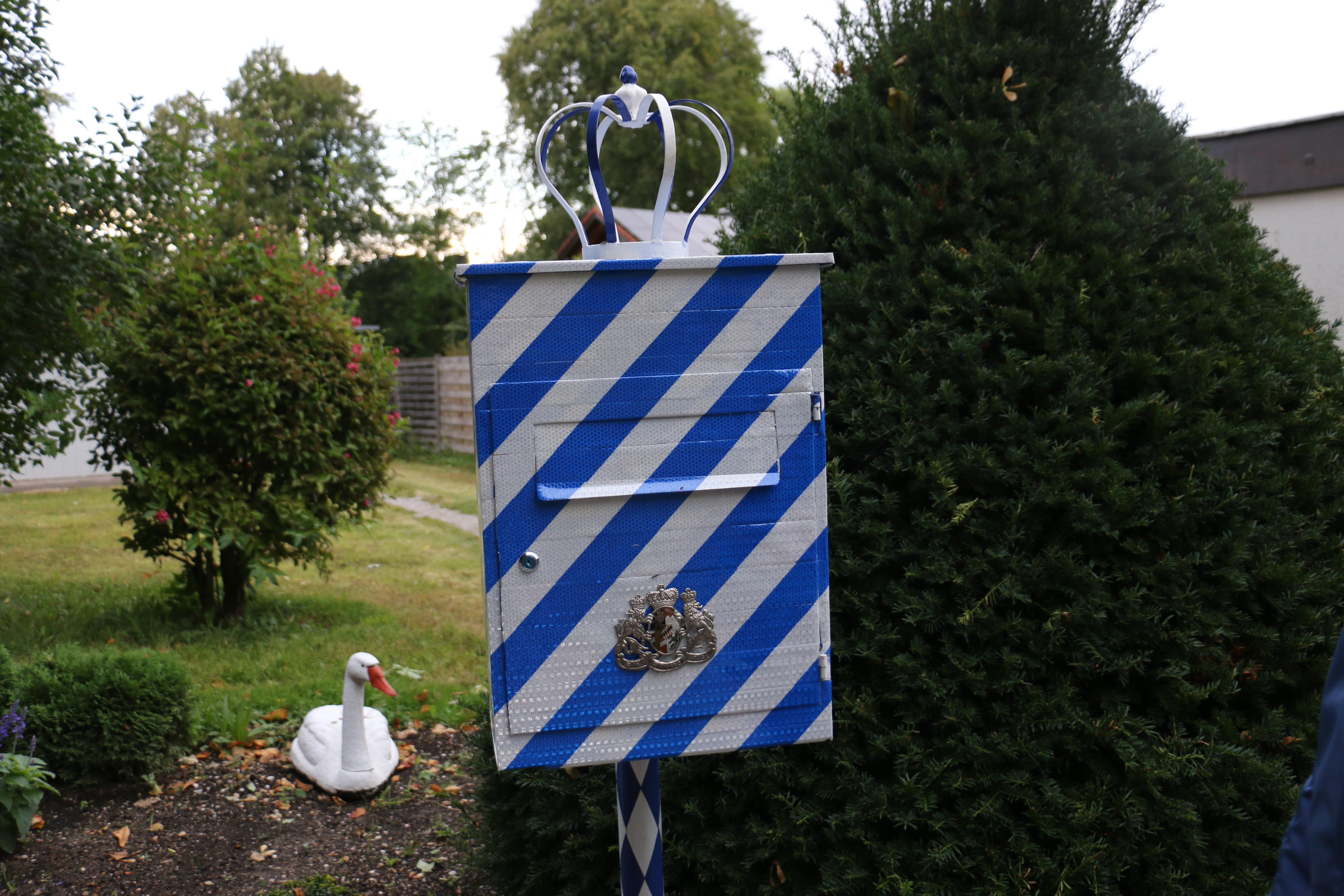 Unser Kini, er lebe HOCH, HOCH, HOCH! Natürlich gabe es auch ein kleines Präsent, welches wir dem Starnberger See in Ehren für unseren Kini übergeben haben. Der Starnberger See war nach nächtlichem Gewitter und mit noch stürmischem Wind heute etwas unruhiger als sonst, aber wir haben am anderen Ende des Sees einen kleinen Regenbogen entdeckt. Das kleine Präsent ist anfangs gut geschwommen... ... musste sich dann aber mit den Wellen auseinandersetzten ... ... und ist heute schon in die Tiefen des Starnberger Sees übergegangen, bevor wir den Platz verlassen hatten. Dafür haben wir einen neu errichteten Platz für unseren Kini entdeckt. Genau dort, wo wir uns immer zum Parken hingestellt haben. Aber seht selbst: Eine Kini-Büste mit Schwänen und einem in bayrischem blau-weiß dekorierten Briefkasten: Ob man da Briefe für den Kini hinterlassen kann?Und natürlich ist uns auch die Phönix-Fahne aufgefallen, denn unser Kini, er LEBT! Es bedanken sich: Hernes_Son , Sirona , Kuro , Yule , Harcos , Andrea , Alexis , Hælvard , Waldläufer , Eiche , Saxorior , Ela , Inara , Cnejna , Naza , Vale , Iris , Munin , Paganlord , Erato , Modiv , Northern , Anicca777 , Wilder Mann , Sleipnir , ElbElfe , Violetta , Aglaia , Waldschrat , Wishmaster , Slaskia , Anuscha , Czar , Dancred , Fulvia , Alva , THT , Heimdall , Rica , Pamina , artus