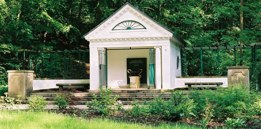 Interessant scheint auch der Brunnentempel der Glashäger Quelle in der Nähe zu sein, zum den ich jedoch vom Quellholz aus keinen Weg fand und deshalb nicht besuchte. Interessant deshalb, da innerhalb des Tempels zwei Schlangen zu sehen sind, die hier als Wasserspeier-Figuren der Quelle dienen: