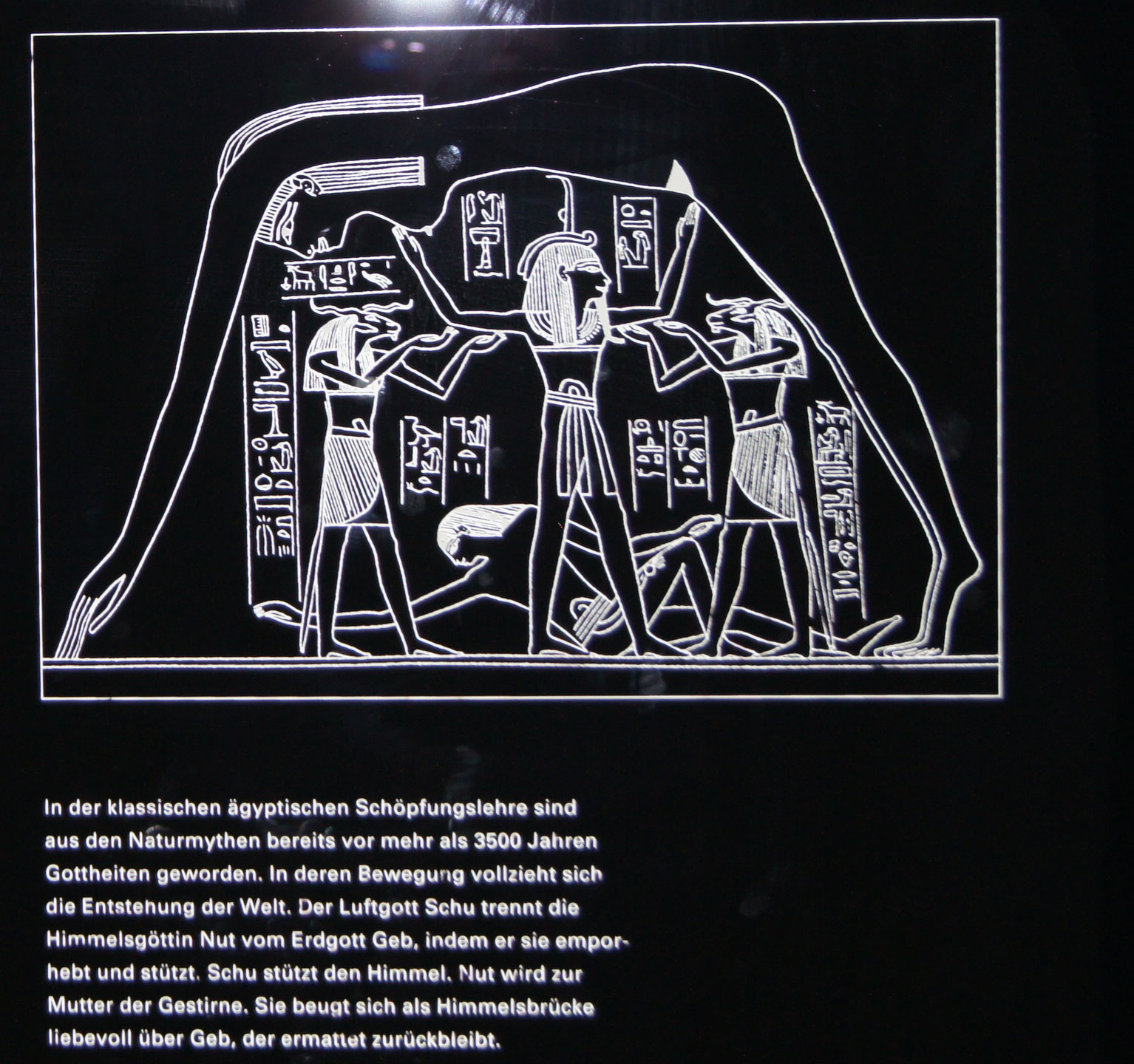 Im obigen Bild ist eine ägyptische Barke abgebildet, so wie man sie auf der Himmelsscheibe erkennen kann. Im Museum ist dazu folgender Text zu finden: