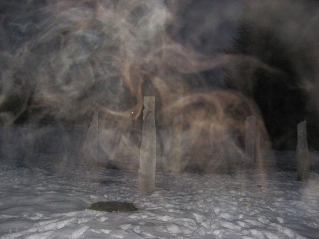 Wir haben auch mal 2 interessante Schnappschüsse gemacht. Das war im Winter in einem Park, wo man erst vor kurzem einen Steinkreis angelegt hat.