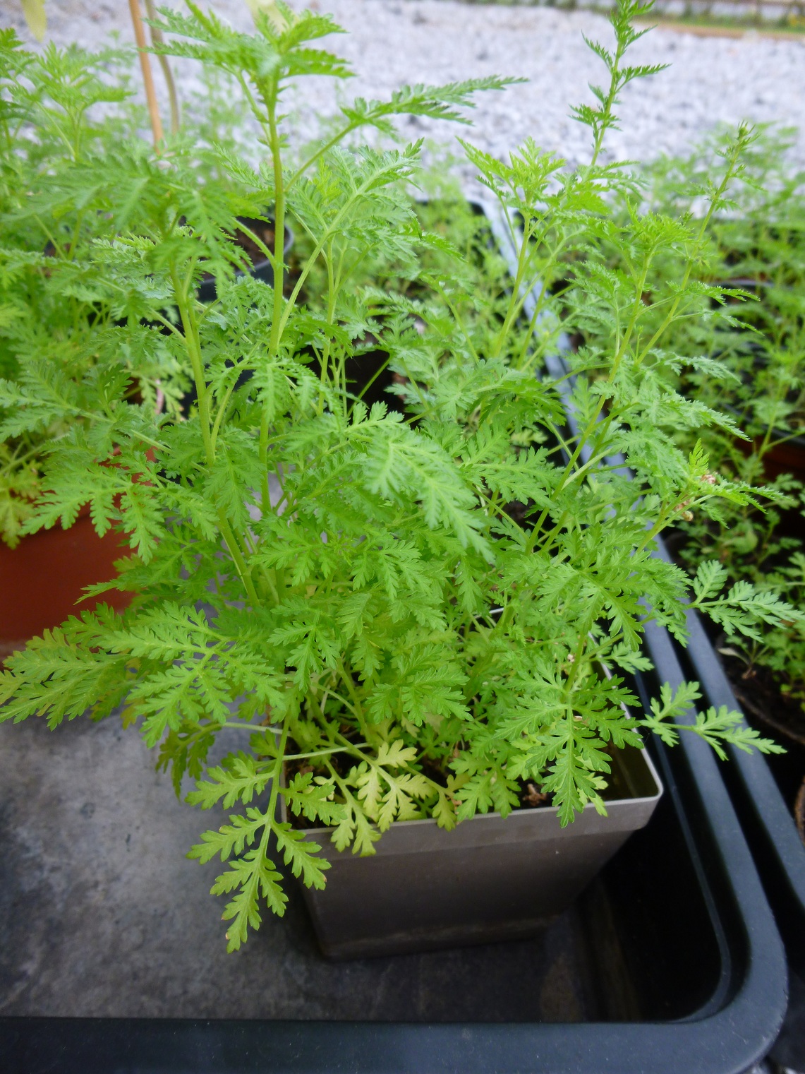 Heute habe ich meine vorgezogenen Artemisia-annua-Pflanzen ins Freie gesetzt... Nun können sie wachsen und gedeihen: