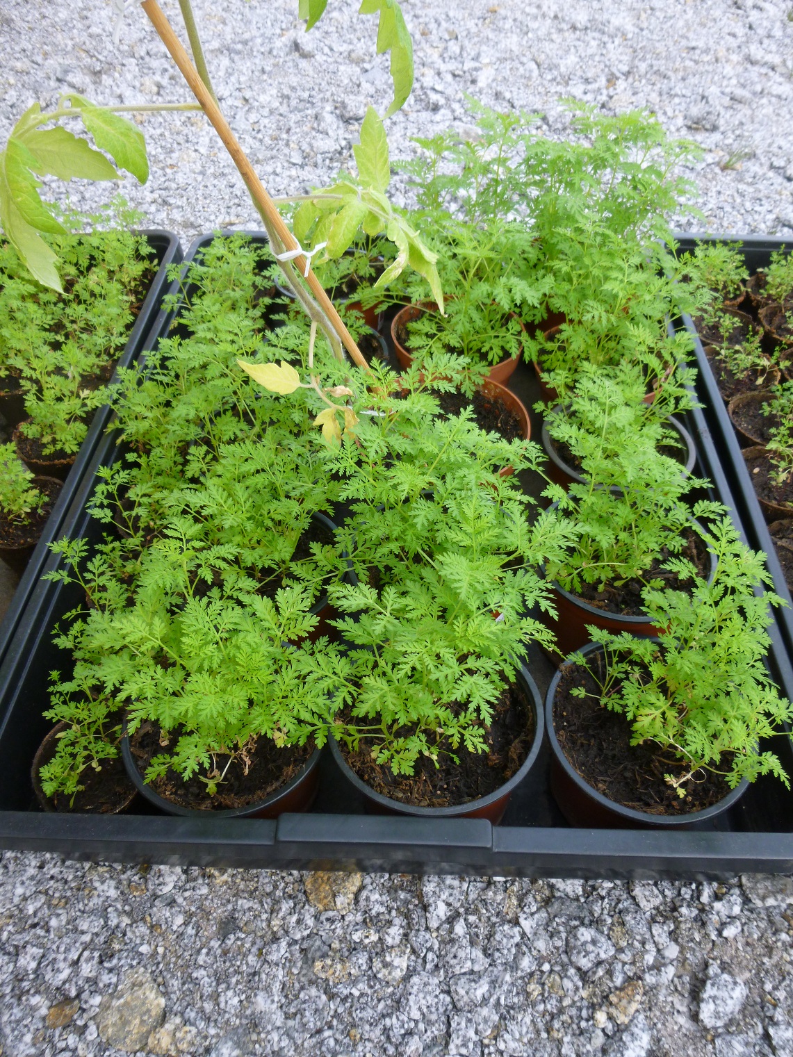 Nach ein paar Wochen konnte man schon sehen, wie groß die Beifußpflanzen neben den Tomatenpflanzen geworden sind.