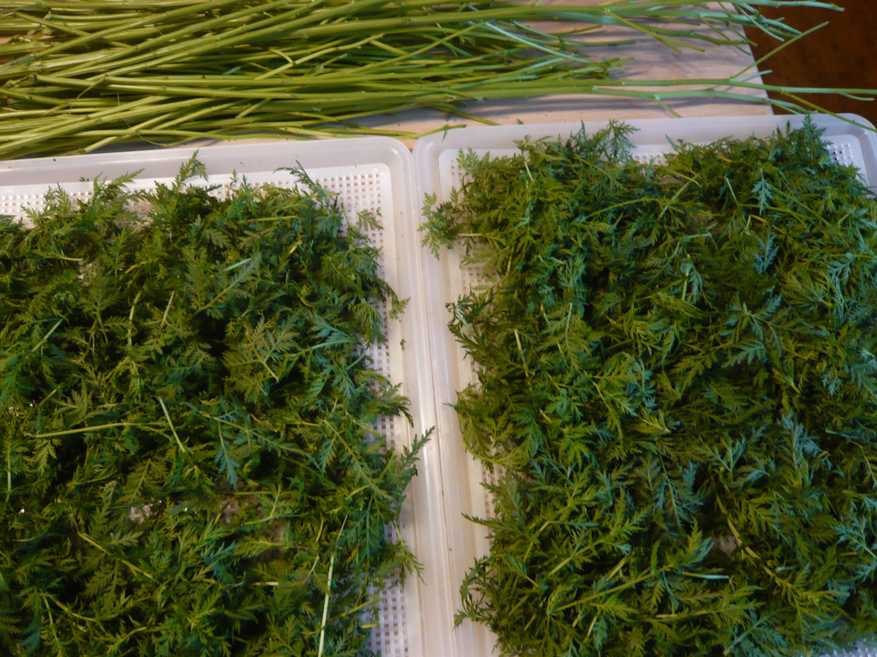 Ich habe nicht ausreichend Kapazitäten, um im Sommer alle meine Pflanzen auf einmal zu ernten und zu trocknen. Durch die sukzessive Ernte duftet unser Haus nun auch immer wunderbar nach Artemisia annua.
