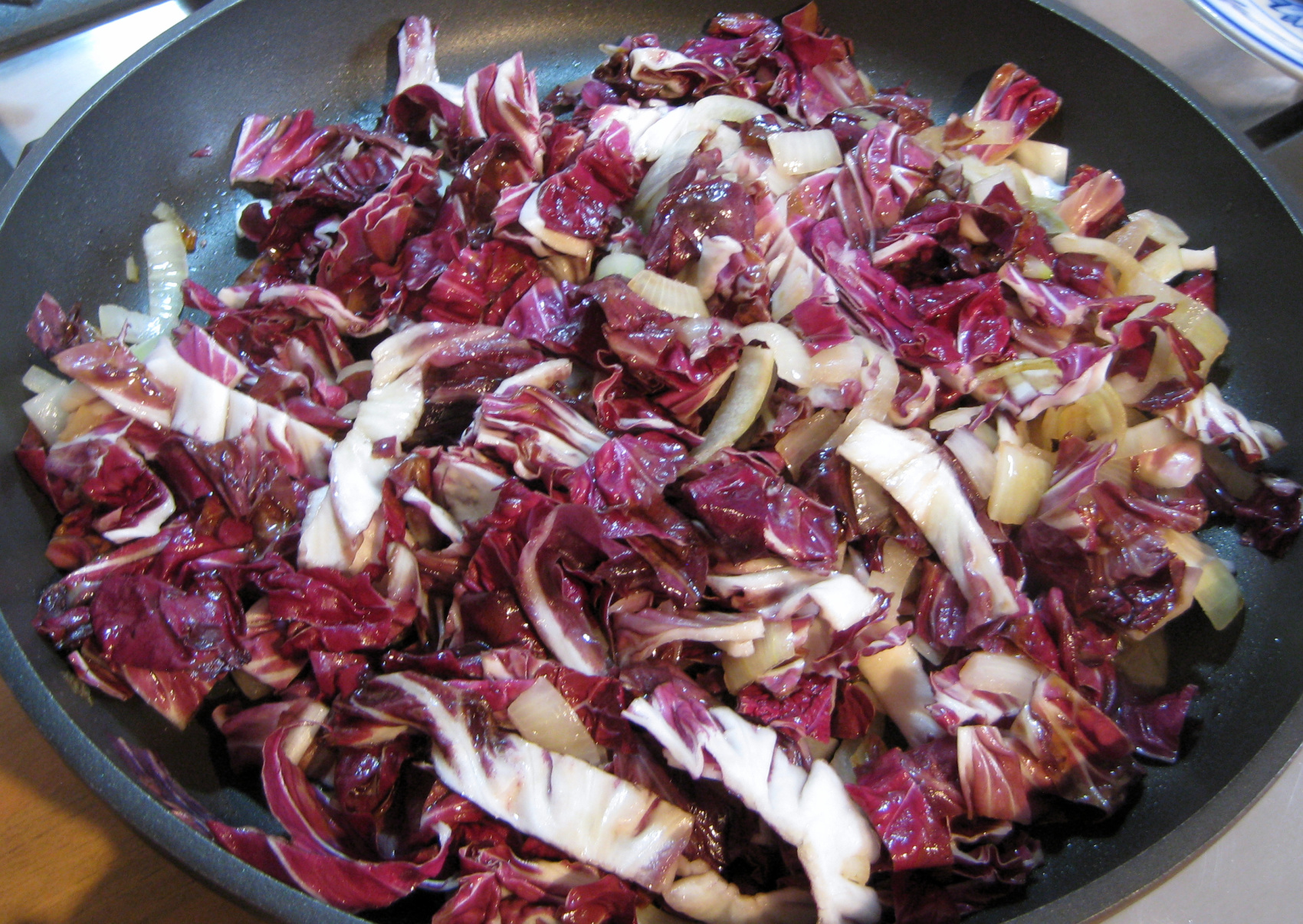 - Nun den Radicchio hinzugeben und kurz mitbraten.