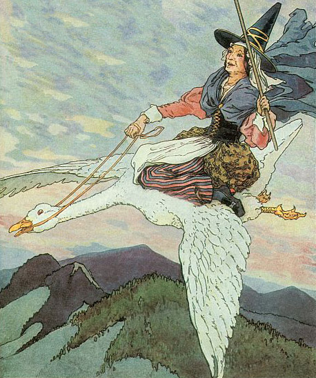 Neben den wilden Reitern von Odin zieht nun auch die "wilde Schar der Hulden" über das Land. Es handelt sich bei der Schar der Hulden natürlich um Frau Holles Gefolge. Frau Holle wird bei den Engländern als Mother Goose (Gänsemutter) bezeichnet. Die Gans als Zugvogel ist ein uraltes Symbol für die Reise in die Anderswelt. Ein Totenvogel, der die Seelen in seinem Schnabel trägt. Also fliegt die Gänsemutter natürlich jetzt zur Totenzeit mit ihrer wilden Schar durch die Lüfte.