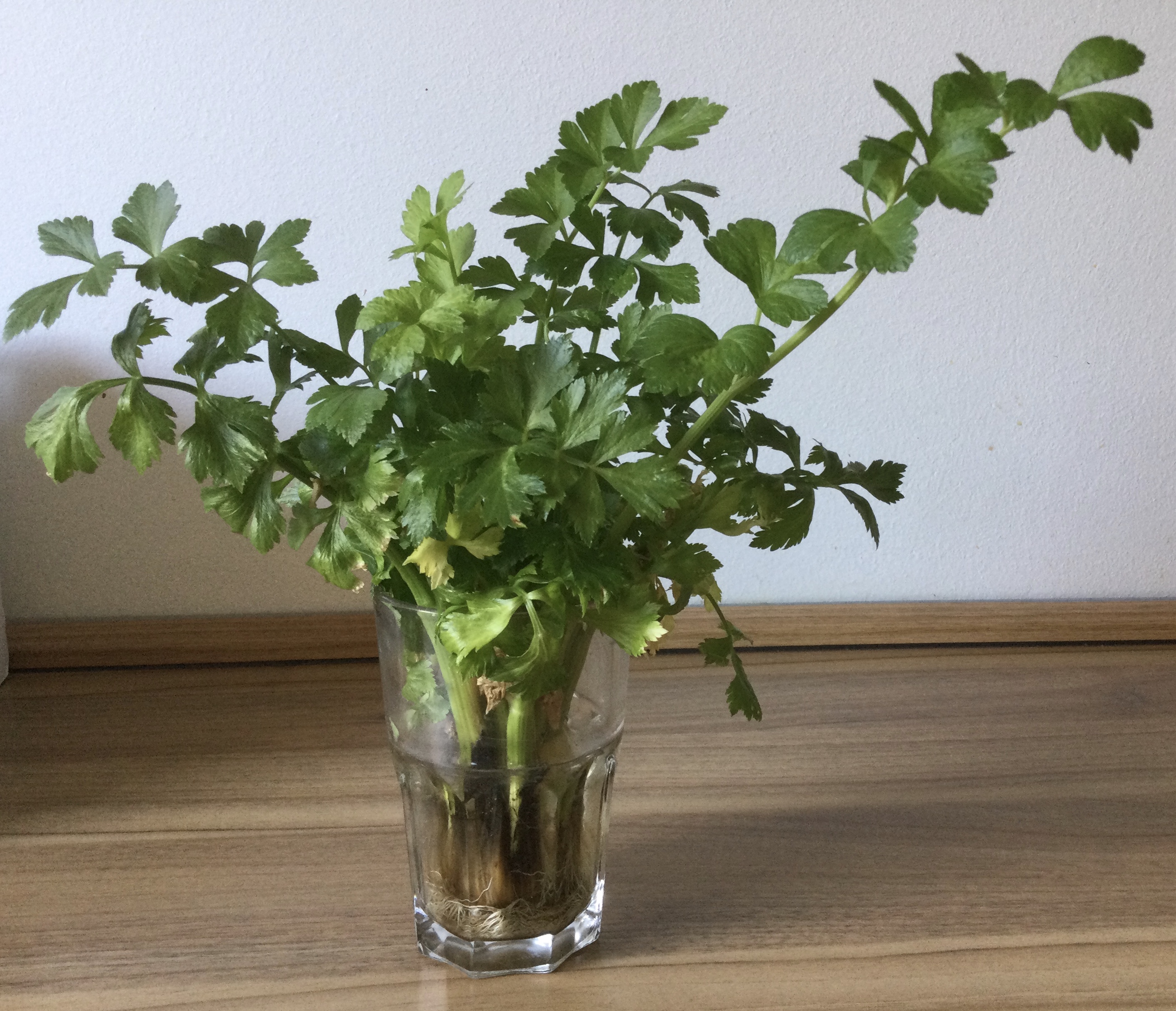 Es gibt einen Möglichkeit, Stangensellerie wieder wachsen zu lassen. Man kann einfach den Strunk (unteren Teil der Staude) in Wasser stellen.