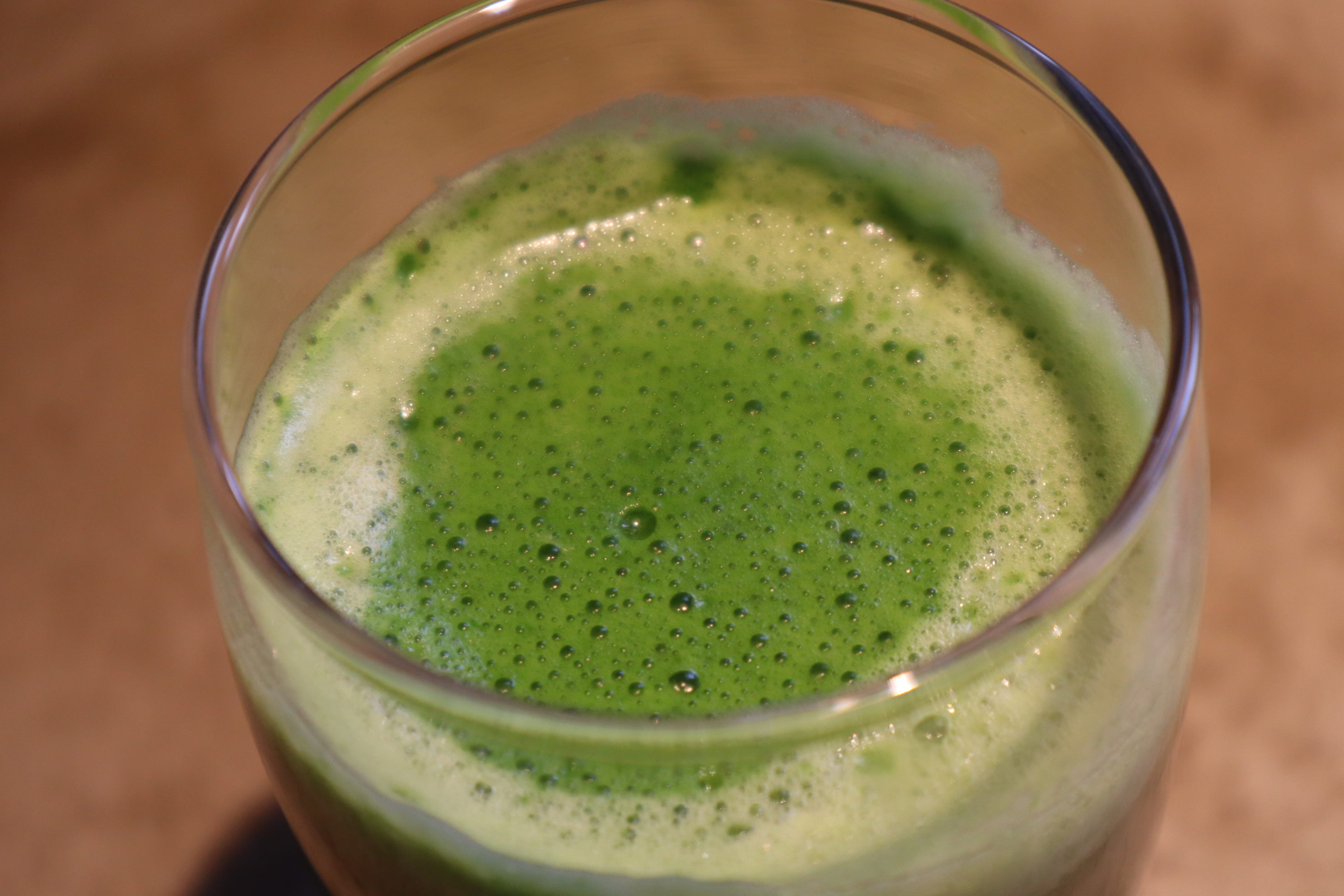 Mich würgt es schon beim Pressen, aber ich bin tapfer und trinke gerade das Gläschen langsam, ganz langsam. Der Geschmack ist dann eigentlich ganz lecker.