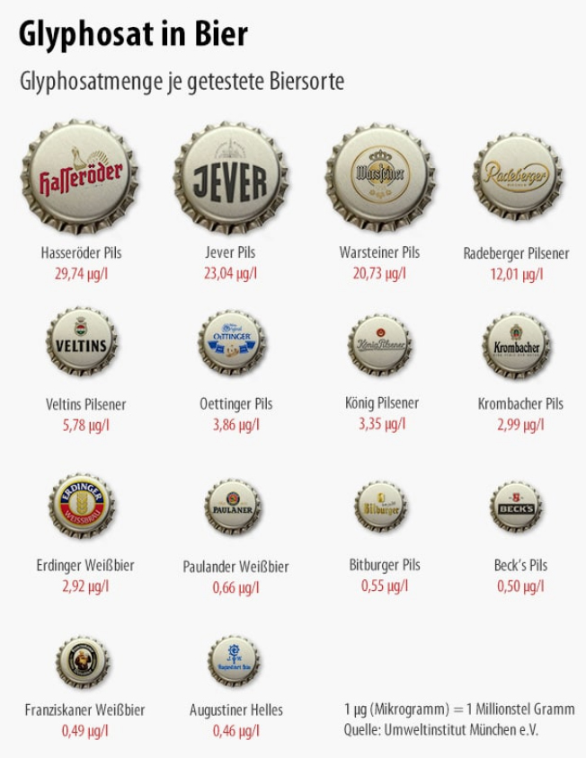 Besonders bitter:Auch in einem Bio-Produkt stieß das Labor auf Glyphosat. Auch wenn wir diesen Gehalt noch als Spur bewerten, liegt er doch deutlich über dem Orientierungswert, den der Bundesverband Naturkost und Naturwaren (BNN) zur Beurteilung von Pestizidrückständen in Bio-Ware heranzieht.
