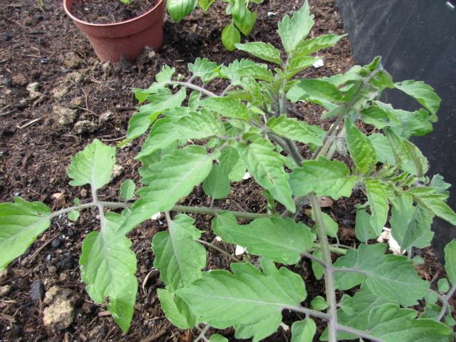 Das ist Phosphormangel. Und zumindest bei Tomaten ist der oft verursacht durch einen Kältestreß. Ich hatte meine selbst gezogenen Tomatenpflänzchen mehr und mehr draußen stehenlassen, schließlich auch über Nacht. Und da war es ihnen wohl mal kalt geworden. Jetzt habe ich die erste ausgepflanzt und dabei bemerkt, daß sie so aussehen: