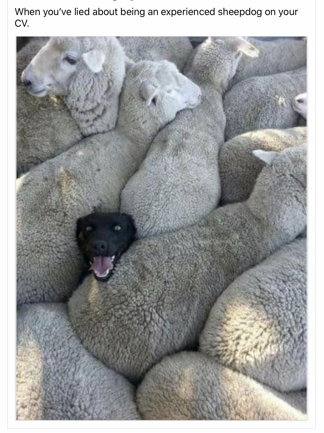 Wenn du in deinem Lebenslauf behauptet hast, ein erfahrener Schäferhund zu sein, und das gelogen war  Lol