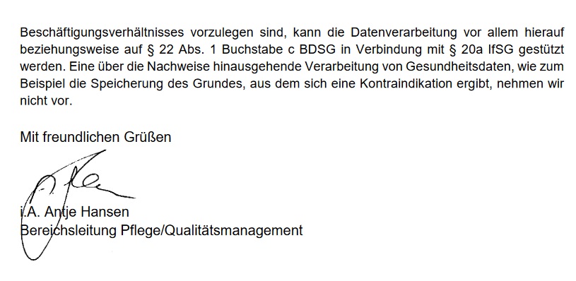 Was auffällt ist, der Anfangsbuchstabe vom Vornamen ist kleiner geschrieben als der Anfangsbuchstabe vom Nachnamen. Der Anstrich vom A geht unter die Linie. Wäre interessant zu sehen, ob sie das in der Handschrift auch so praktiziert. Der Nachname ist definitiv unleserlich! Eine sehr große Einrollung durch den Anfangsbuchstaben des Nachnamens, so daß der abgekürzte Vorname fast komplett eingeschlossen ist. Wortende ist abfallend. Eine Unterschrift, die man als verschnörkelt bezeichnen kann. Das bedeutet, die Schreiberin schützt deutlich ihre Privatsphäre, wenngleich ihr Fokus auf der Karriere liegt. Sie besitzt ein banales Ich-Bewußtsein und einen kommerziellen Instinkt. Die Dame möchte wichtig sein! Die Schreiberin schreckt auch vor Lüge und Verstellung nicht zurück. Man erkennt an der abfallenden Unterschrift den Hang zur Depression. Der Anstrich vom A. ist besonders interessant. Er startet deutlich unter der Zeile, das bedeutet, er ist wie ein drittes Standbein zu betrachten. Sie lehnt sich an die Meinung eines anderen an, hat einen Berater im Hintergrund, von dem sie abhängig ist. Sie ist nachgiebig und sucht nach Führung und Zuspruch. Wenn der Ehemann dieser Berater ist, fühlt sie sich ihm zudem unterlegen, was man an der unterschiedlichen Buchstabengröße des Vor- bzw. Zunamen erkennt.