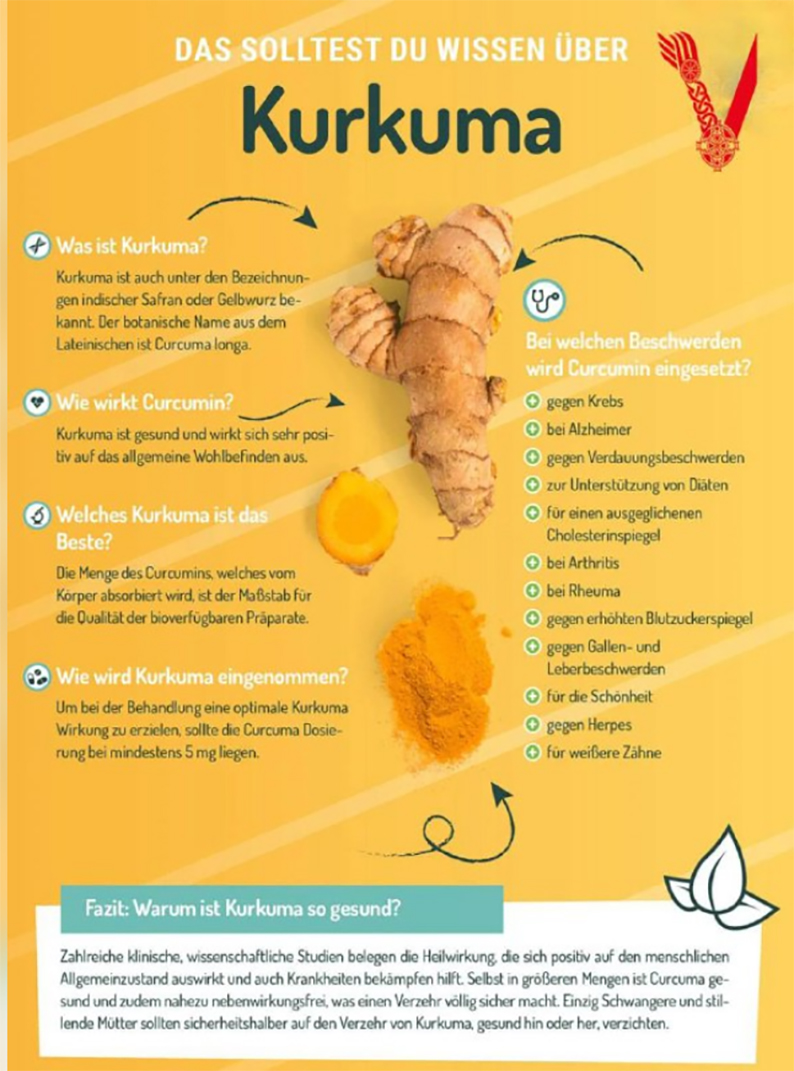 Viele kennen Kurkuma nur aus der Gewürzecke. Was aber viele nicht wissen ist die Tatsache, daß Kurkumin (Hauptwirkstoff) in der chinesischen und ayurvedischen Medizin eine sehr große Rolle spielt und international als der am besten erforschte natürliche Wirkstoff der Welt gilt.