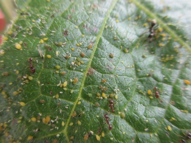 Es gibt also viele verschiedene Arten von Blattläusen. Ich hatte bisher nur diese grünen und die schwarzen gekannt, die vermutlich jeder schon mal gesehen hat, die sich vor allem an den Stengeln zusammendrängen.