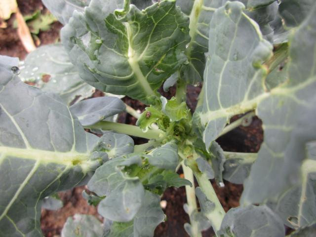 Heute morgen sah ich einen weißen Falter zum Kohlbeet fliegen und auch einzelne Pflanzen darin anfliegen kurz. War das etwa ein Kohlweißling? Also ging ich mal nachsehen, eigentlich war er viel zu kurz dort, um Eier abgelegt zu haben. Ich habe auch keine gefunden.