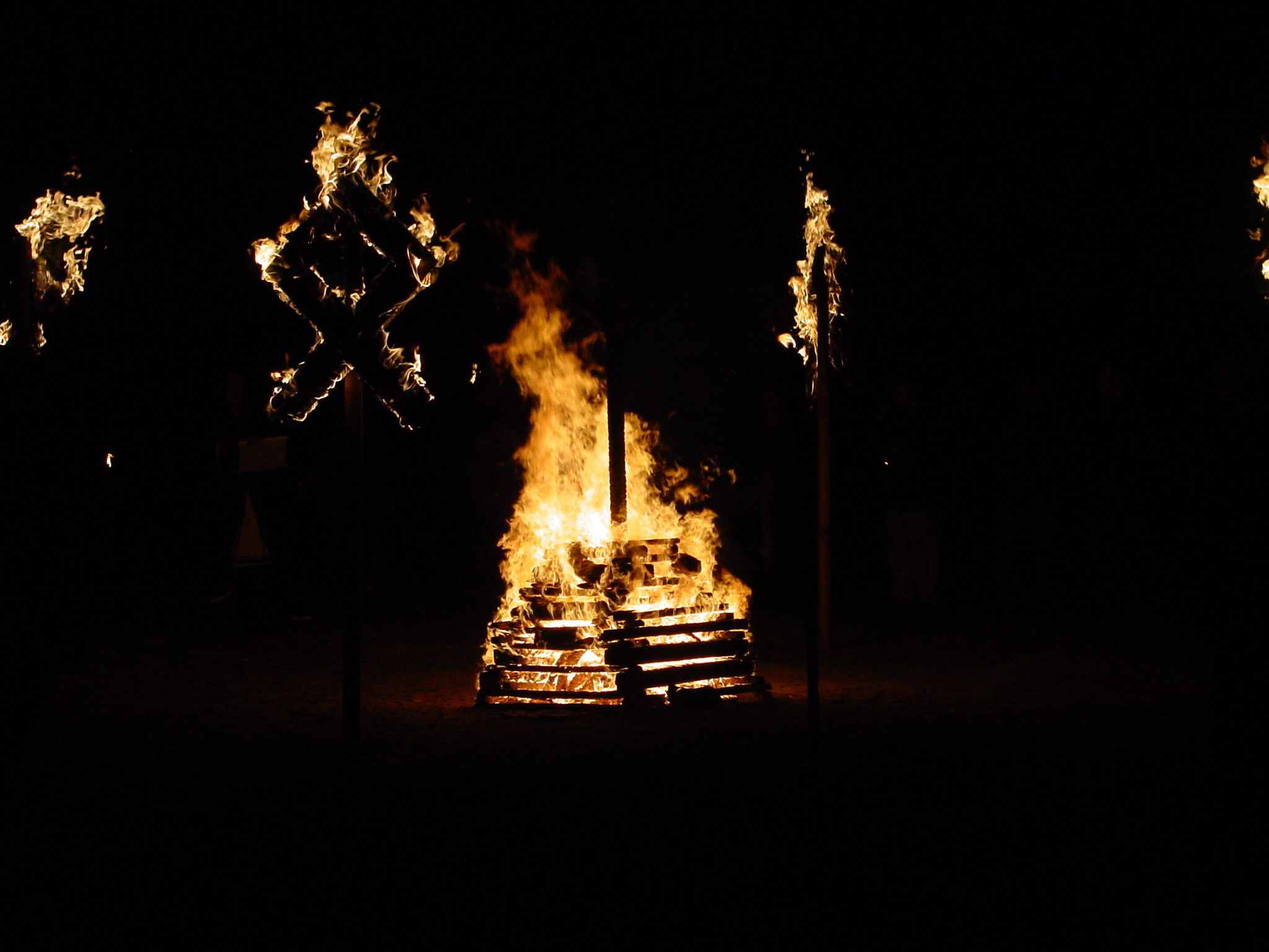 Und so habe ich in einem meiner Lieblingsbilder, welches sogar mein Wohnzimmer schmückt, erst jetzt erkannt, daß der Feuergeist bei dieser Flammenfeier damals (2008) anwesend war. Siehe sein Gesicht über dem Knick auf der linken Seite des Feuers ...