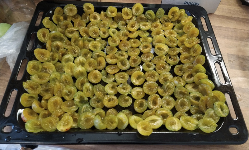 So sind bei uns am Ende stolze 17 Kilo halbierte Zwetschgen, und vor allem Mirabellen, in der Tiefkühltruhe gelandet.