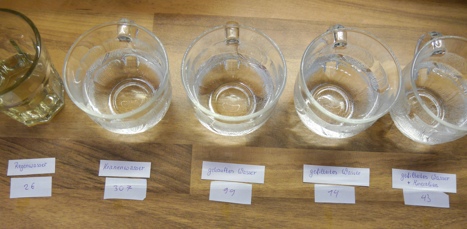 Bevor wir die Osmoseanlage gekauft haben, hat Rabe zwei Gläser mit Wasser gefüllt und das Wasser daraufhin verdunsten lassen. In einem der Gläser befand sich Kranenwasser und in dem anderen Kranenwasser, dass nur über ein Stück Küchenpapier gefiltert wurde.