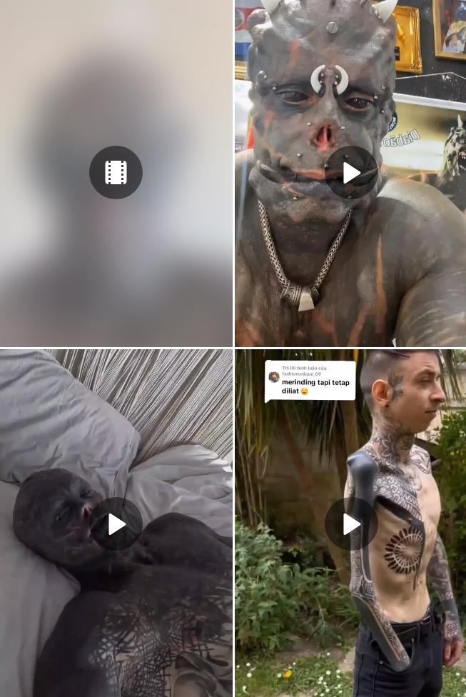 Menschen, die keine Menschen mehr sind und keine Menschen mehr sein wollen. Auffallen um jeden Preis! Das andere Extrem ist, eine Schönheitsoperation nach der nächsten durchzuführen. Auch diese Nicht-Menschen gibt es. Busen, Brust, Körpergröße, Penislänge, Waden, Lippen, Krampfadern, Falten, Geschlechtsumwandlung ... Sie alle wollen einem Ideal entsprechen und ihren Körper entsprechend "gestalten". Solche Leute sind psychisch armselig. Weg vom biologischen Menschsein, hin zum Kunstmenschen. Warum tun Ärzte das? Haben sie nicht einen Eid geschworen?