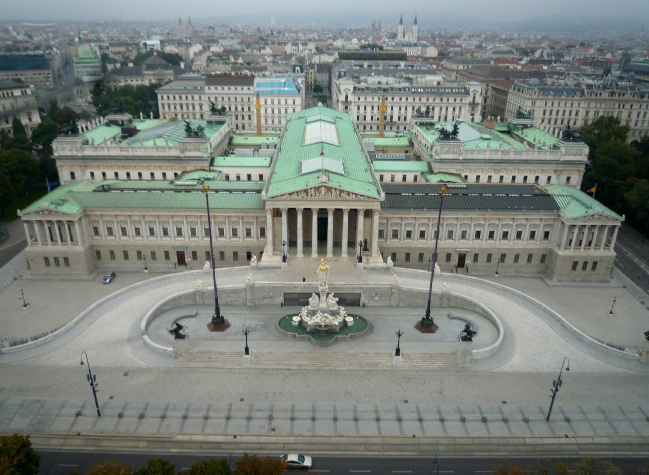 Zum Abschluss möchte ich noch eine Außenaufahme des Parlaments in Wien zeigen, um auch ein Bild von der Hülle vor Augen zu haben. Schließlich steht Außen wie Innen bei guter Architektur stets im Zusammenspiel! So wie überall sonst auch