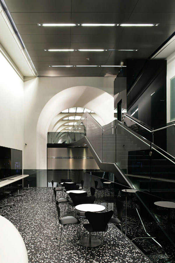 Bei der Betrachtung der neugestalteten Räumlichkeiten ist zu erkennen, daß an vielen Stellen die historischen, reich verzierten architektonischen Elemente glatten, kühlen Oberflächen weichen mussten.